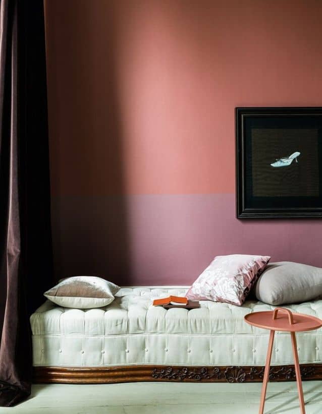 Pas difficile à réaliser, j’aime particulièrement cette idée qui vous permet de mettre un peu de couleur sur un mur blanc ou au contraire jouer sur deux nuances de couleurs ou des couleurs complémentaires. A vous de choisir les proportions du murs pour telle ou telle couleur. Vous pouvez aussi jouer sur des effets coups de pinceau pour créer un peu de flou dans la délimitation.