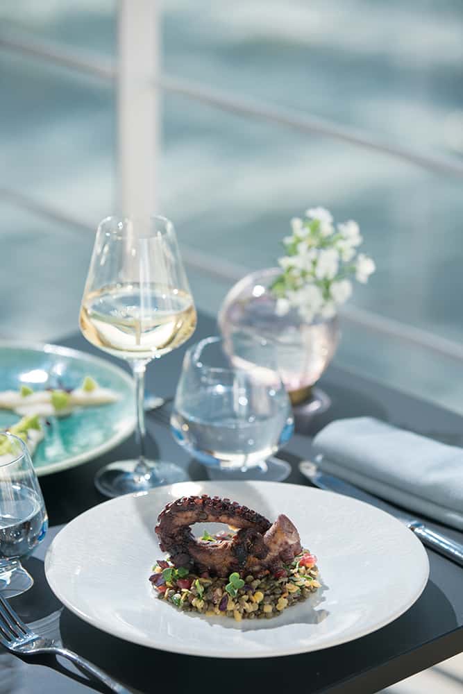 Au restaurant, le long bar et la cuisine ouverte se font écho de part et d’autre des longues tables où partager les plats simples et généreux imaginés par Guy Savoy.