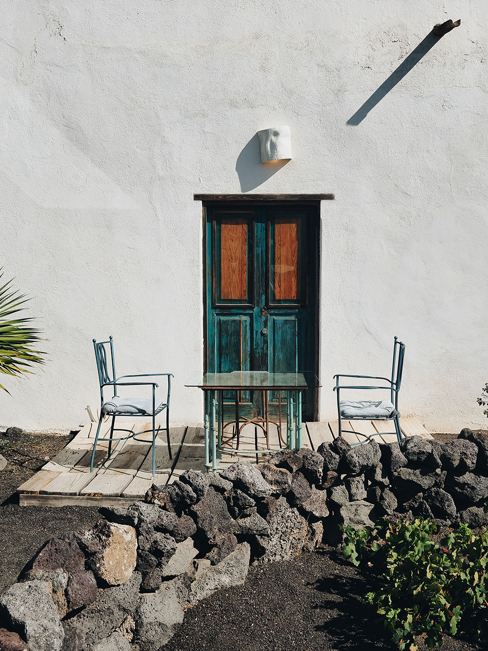 Gonzalo et Mayca ont créé un lieu unique en gardant l’essence même des maisons de Lanzarote et apportant cette touche de modernité et de design rustique. Cette ancienne ferme a été rénovée avec énormément de goût. On retrouve l’architecture canarienne avec les murs blancs et les portes vertes, mais avec un joli twist à l’intérieur des chambres.
