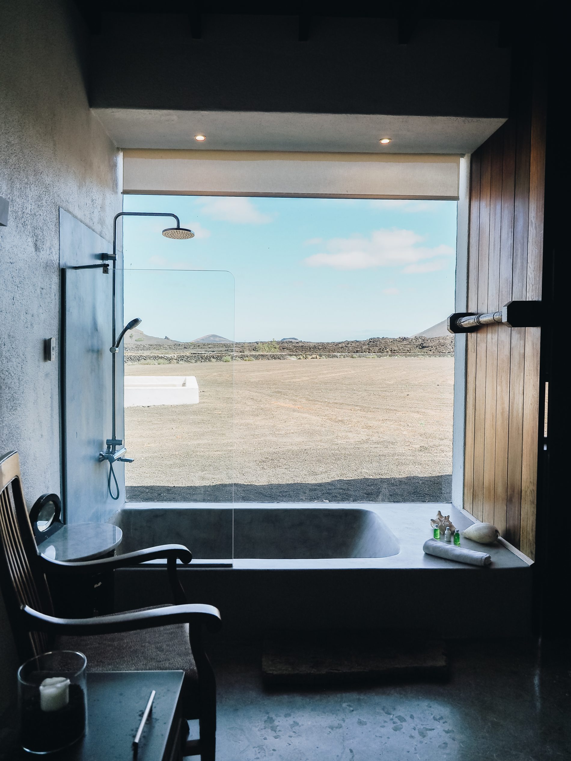 Mon coup de coeur sont bien sur les baies vitrées… La baignoire de la suite Ouest où nous avons séjourné deux nuits avec la vue sur les volcans !