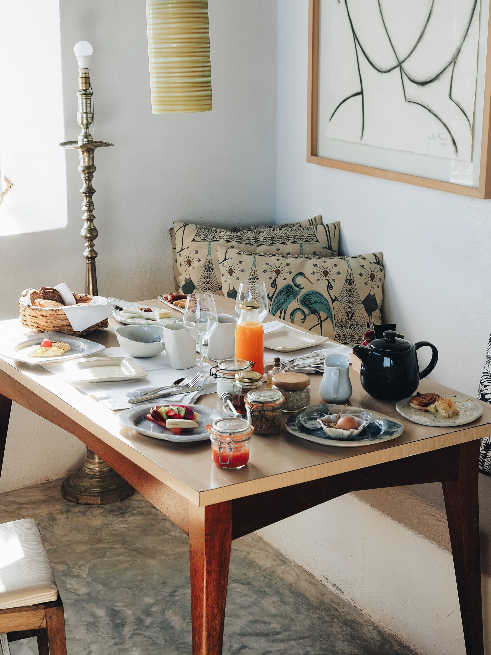 Un petit-déjeuner délicieux et copieux est servi tous les matins. Il est complet, les produits sont faits maisons ou proviennent de l’île. Tout est absolument délicieux ! Vous pouvez prendre votre petit-déjeuner sur la terrasse ou dans votre chambre. Tous les jours, vous aurez droit à du pain frais, de la confiture maison, du miel, du fromage de chèvre et du yaourt de Lanzarote, du jus d’orange pressé, thé ou café, des pâtisseries (cinnamon Rolls et tarte crumble), du jambon, du muesli, des oeufs selon votre convenance. Bref, c’était un petit-déjeuner parfait !