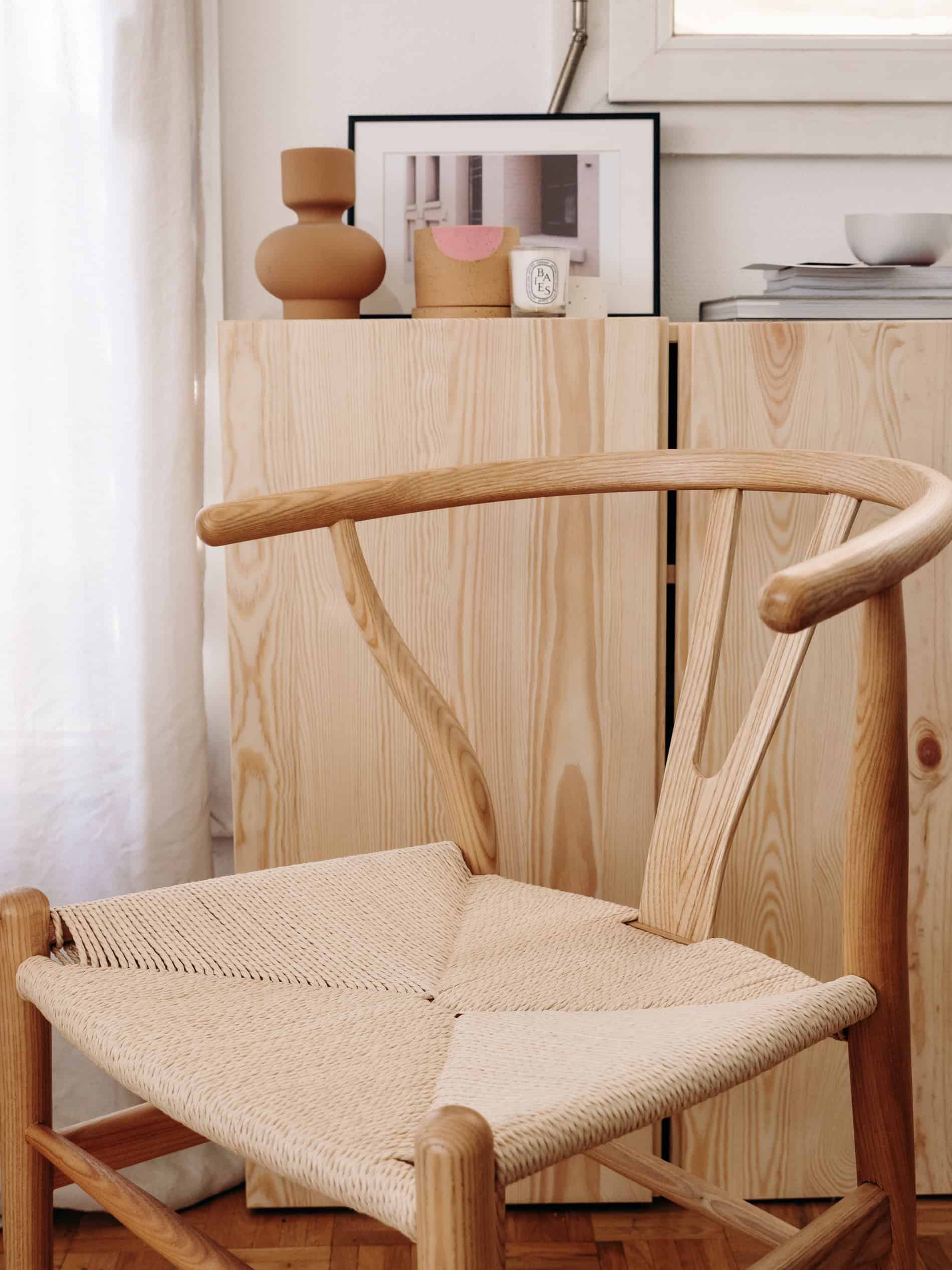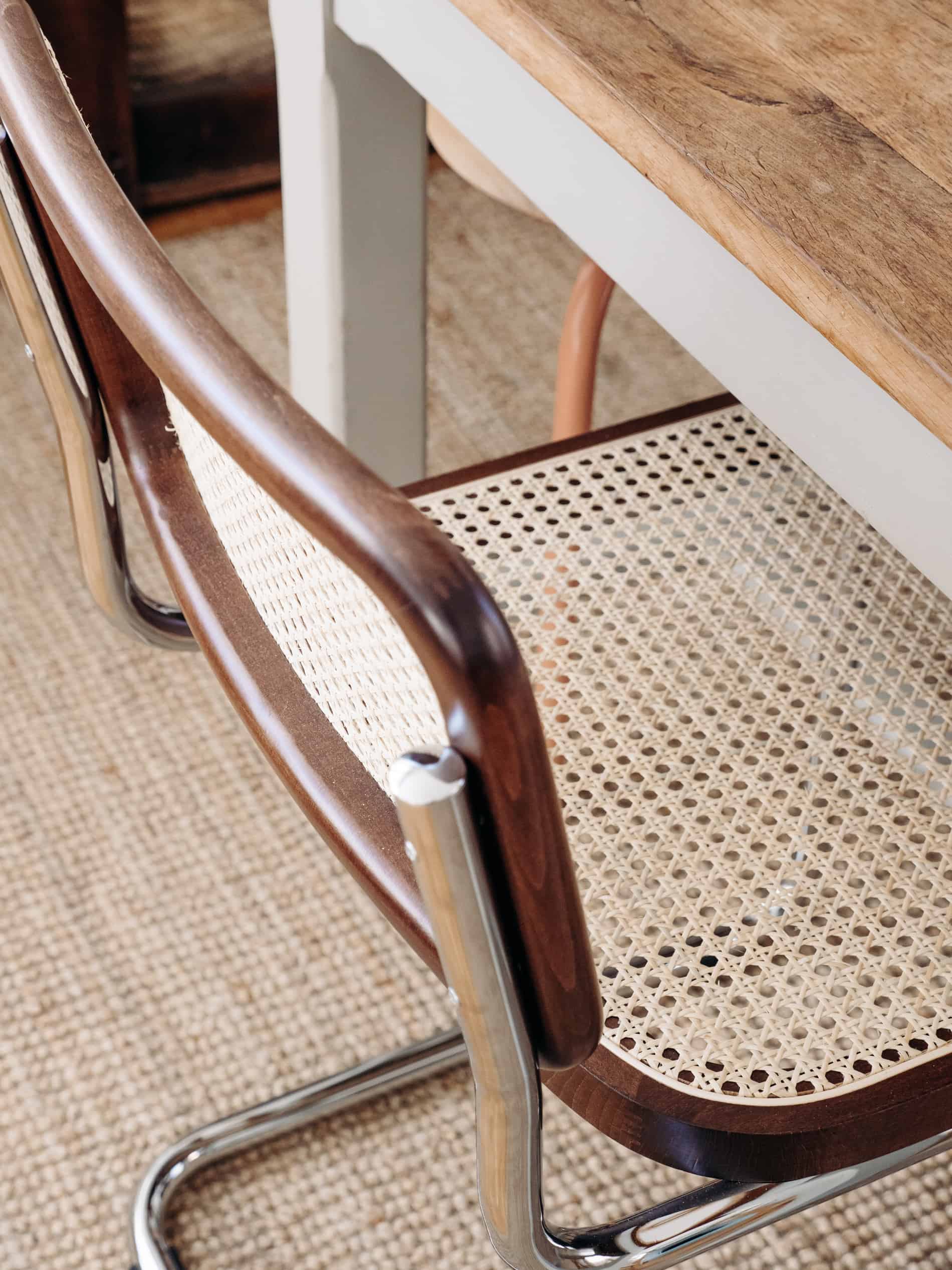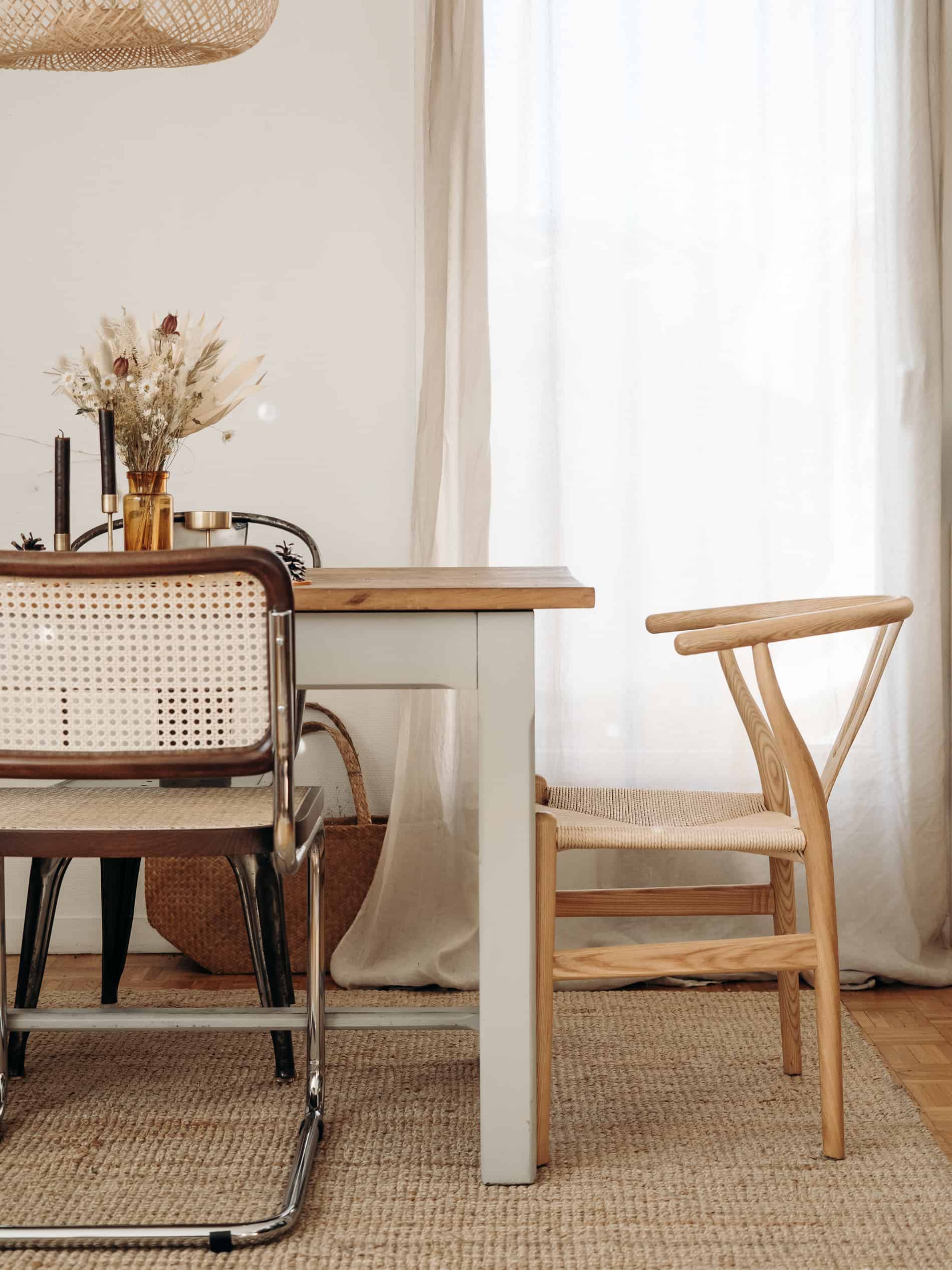 J’ai choisi la chaise Cesca ainsi que la chaise Wishbone CH24 inspiration Hans Wegner. Elles viennent compléter ma collection de chaises dépareillées, ma chaise Tolix en métal vintage et ma chaise Tiptoe. Je suis vraiment ravie du résultat.