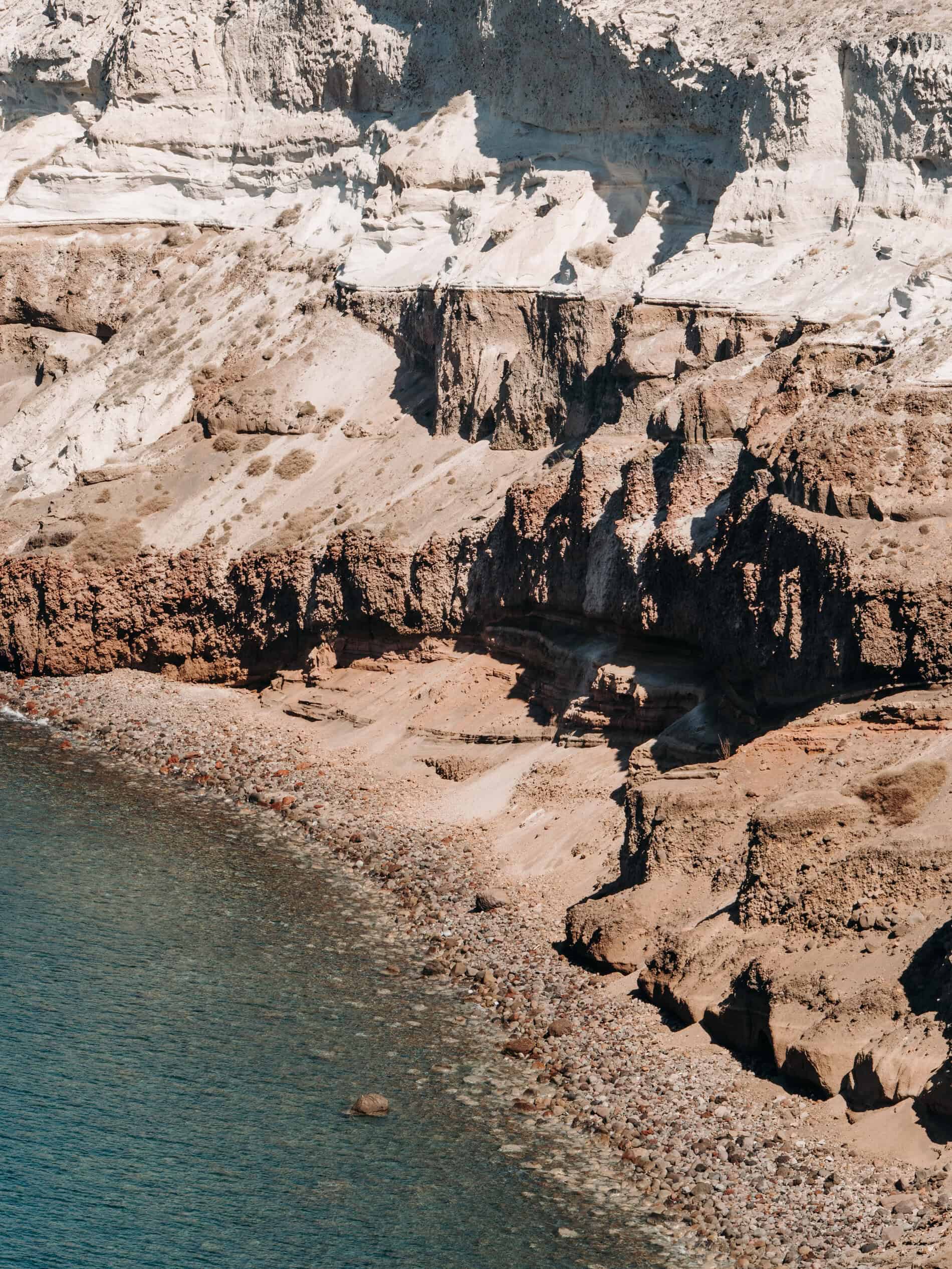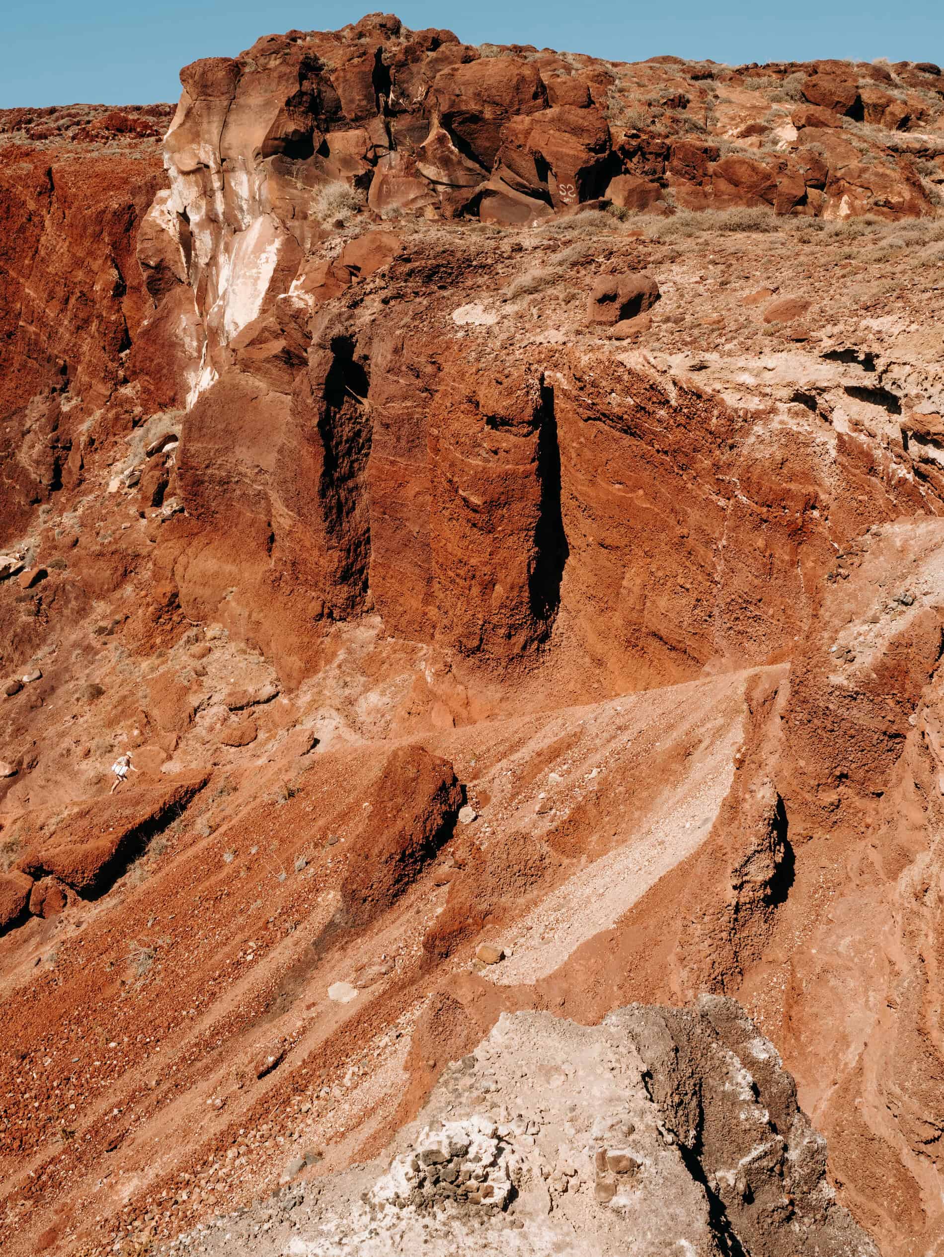 Santorin, île volcanique, offre des plages atypiques aux couleurs surprenantes. La Red Beach, avec son sable rouge et ses falaises abruptes, est une merveille naturelle. Un peu plus loin, la Black Beach de Perissa propose une ambiance plus décontractée avec ses transats et bars en bord de mer. Nous l’avons pas fait car ce n’est pas ce que nous recherchions.