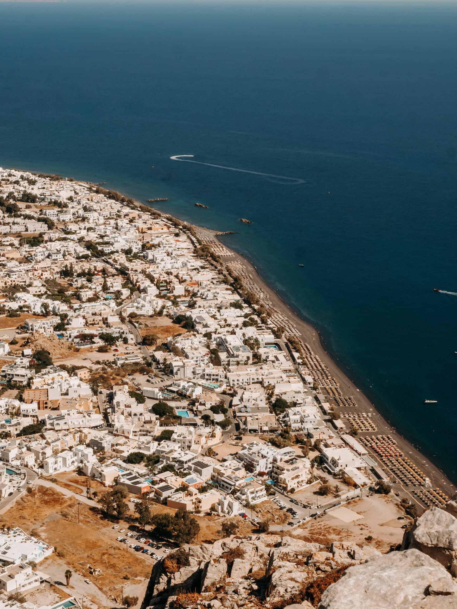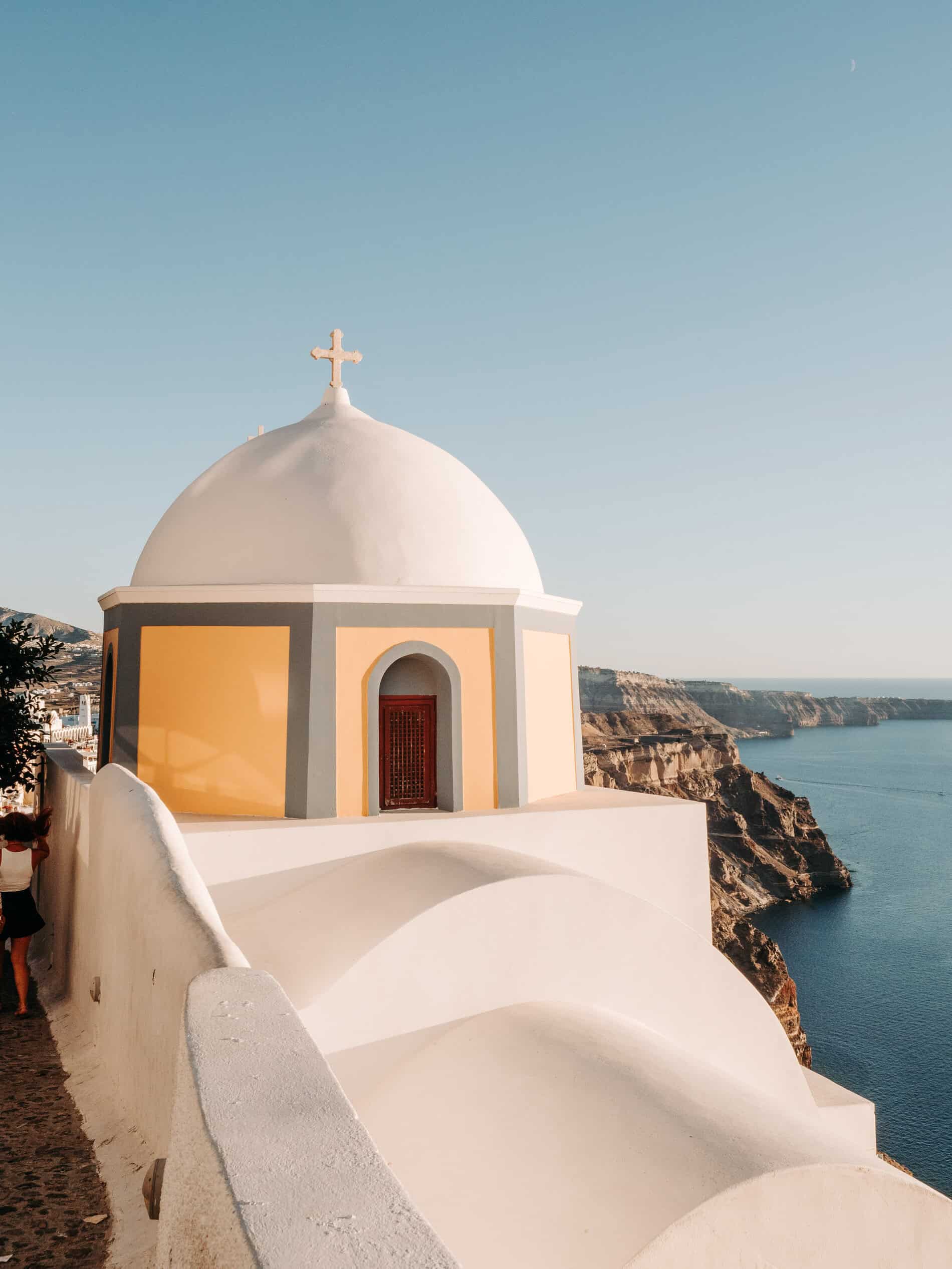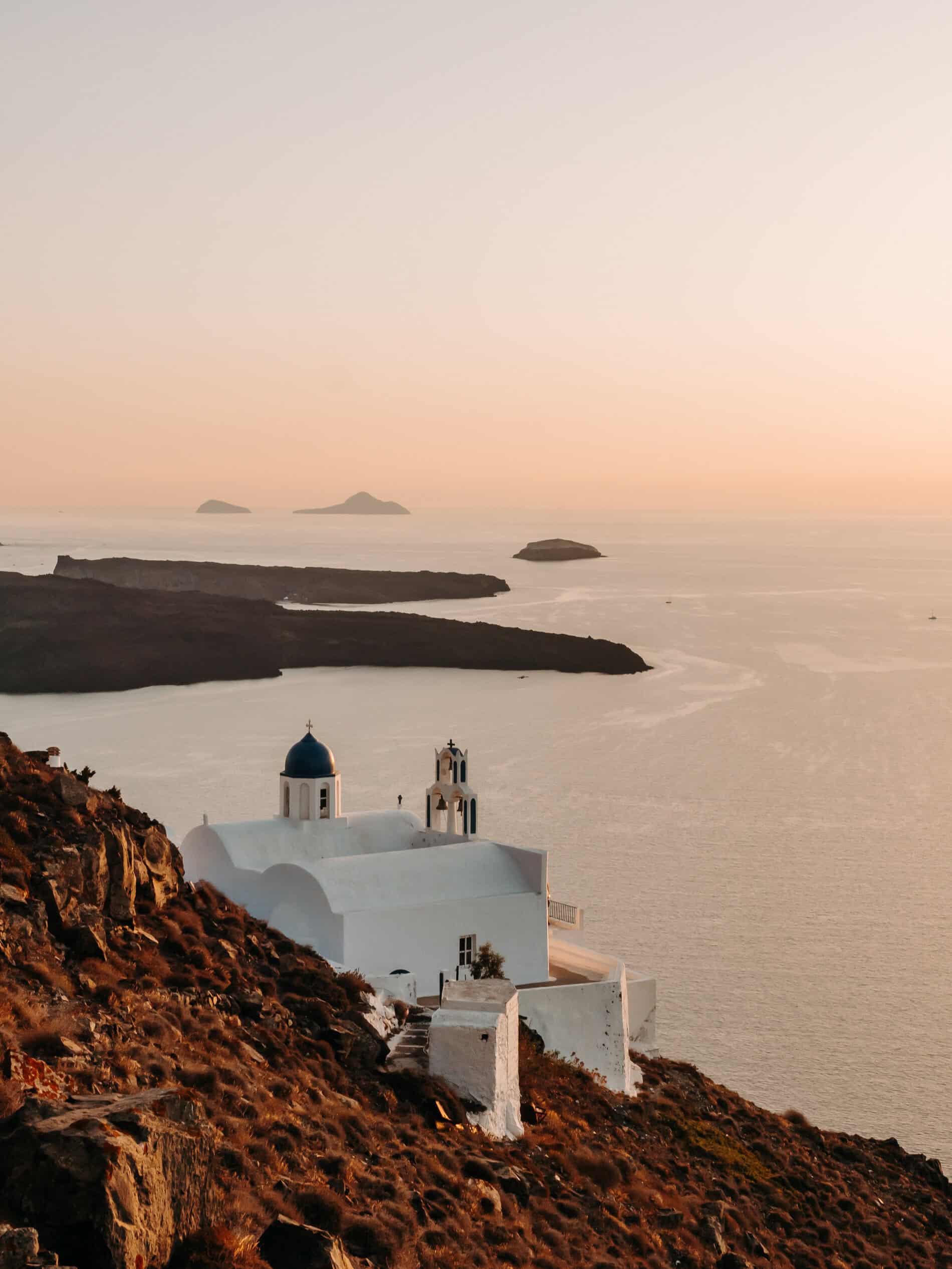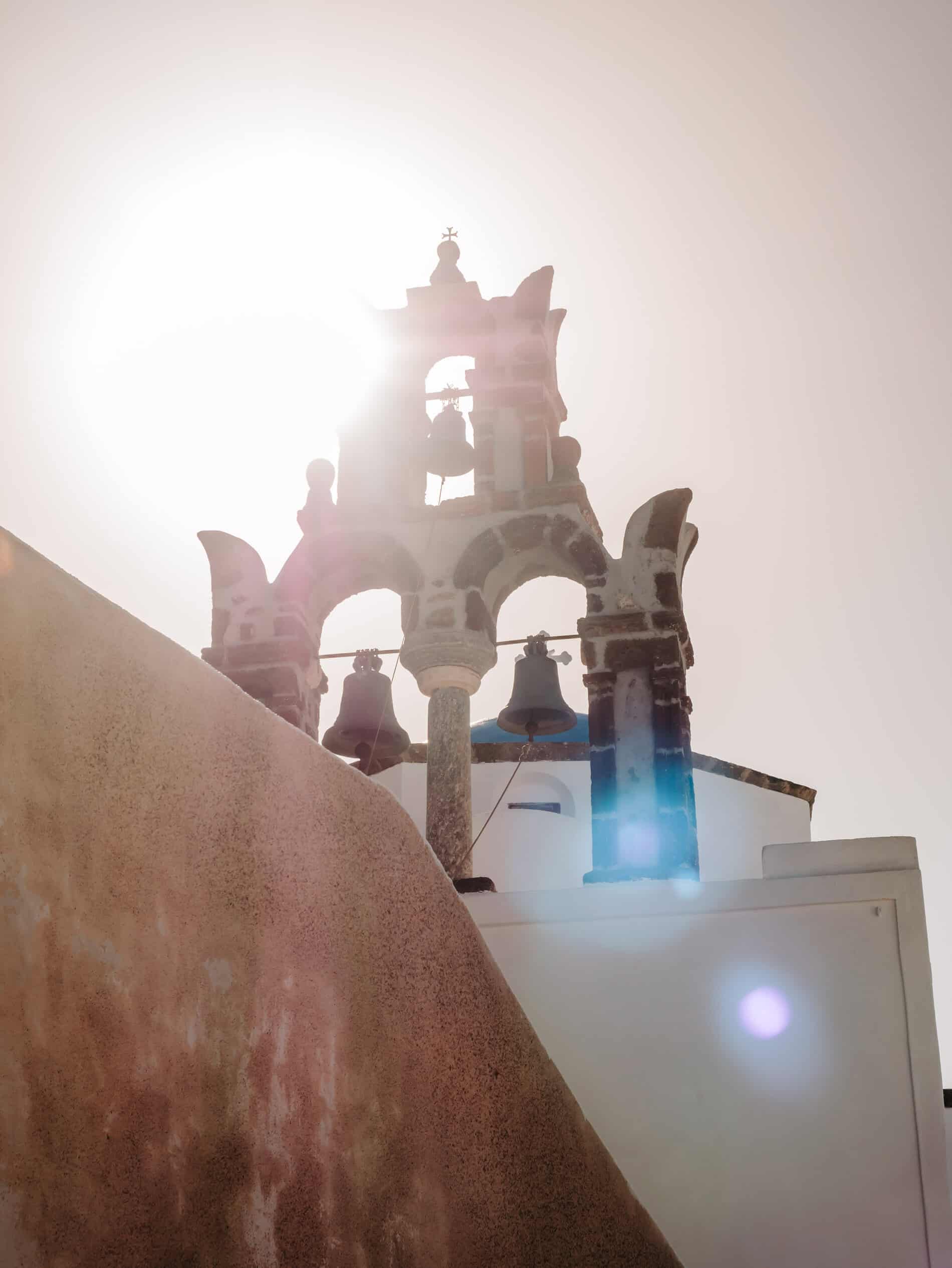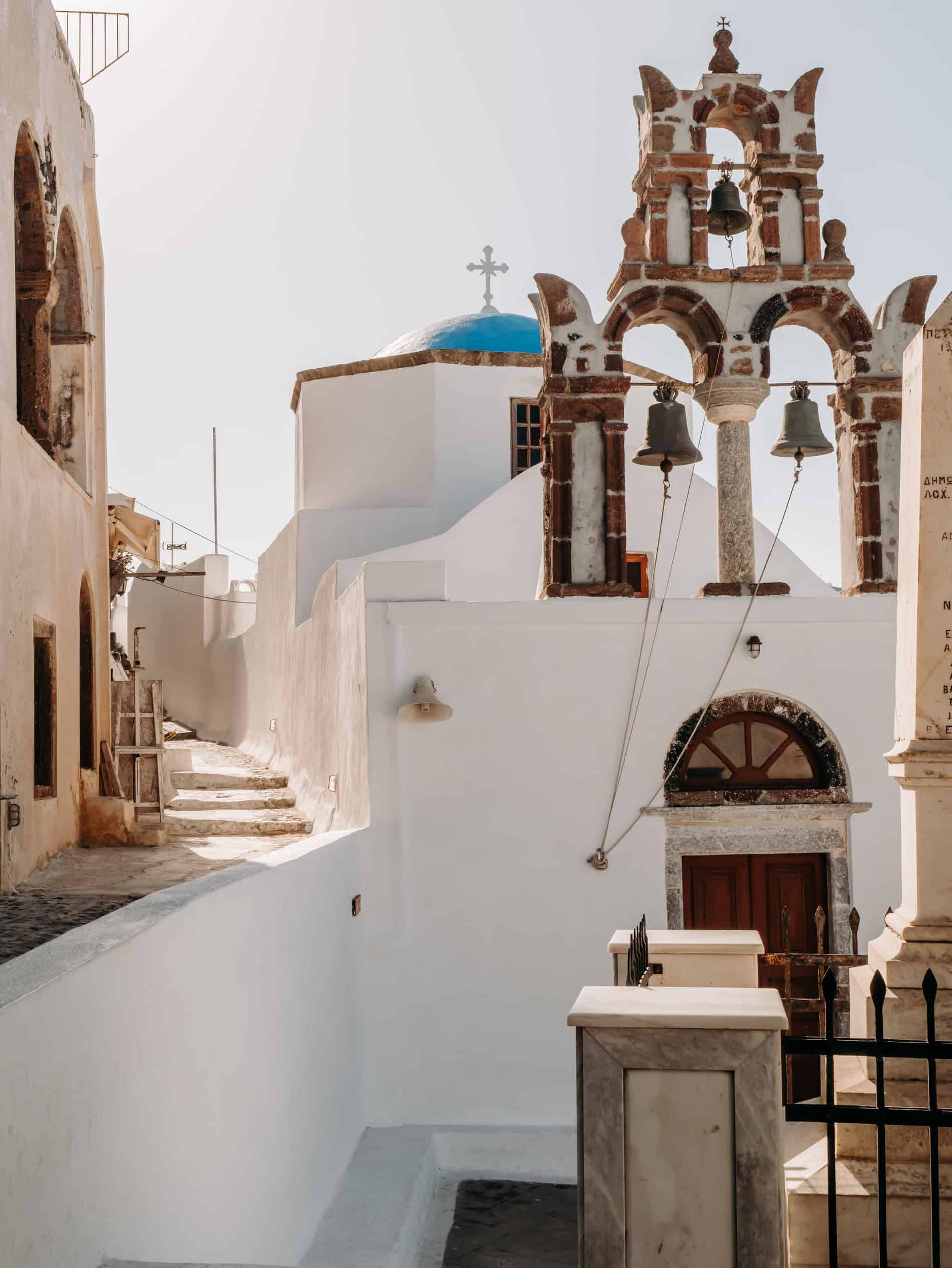 Situé entre Fira et Oia, ce village paisible a été notre point de chute et il offre une vue imprenable sur la mer et la caldeira. Gros gros coup de coeur pour cet endroit.  Moins fréquenté que ses voisins, il est idéal pour une escapade romantique avec ses restos chics ou une promenade le long du sentier menant au rocher de Skaros, une formation rocheuse spectaculaire.  Nous avons fait deux fois le coucher de soleil sur ce rocher, et avons même été tout au bout où se trouve une église tout mignonne. C’était toujours spectaculaire, un moment inoubliable.