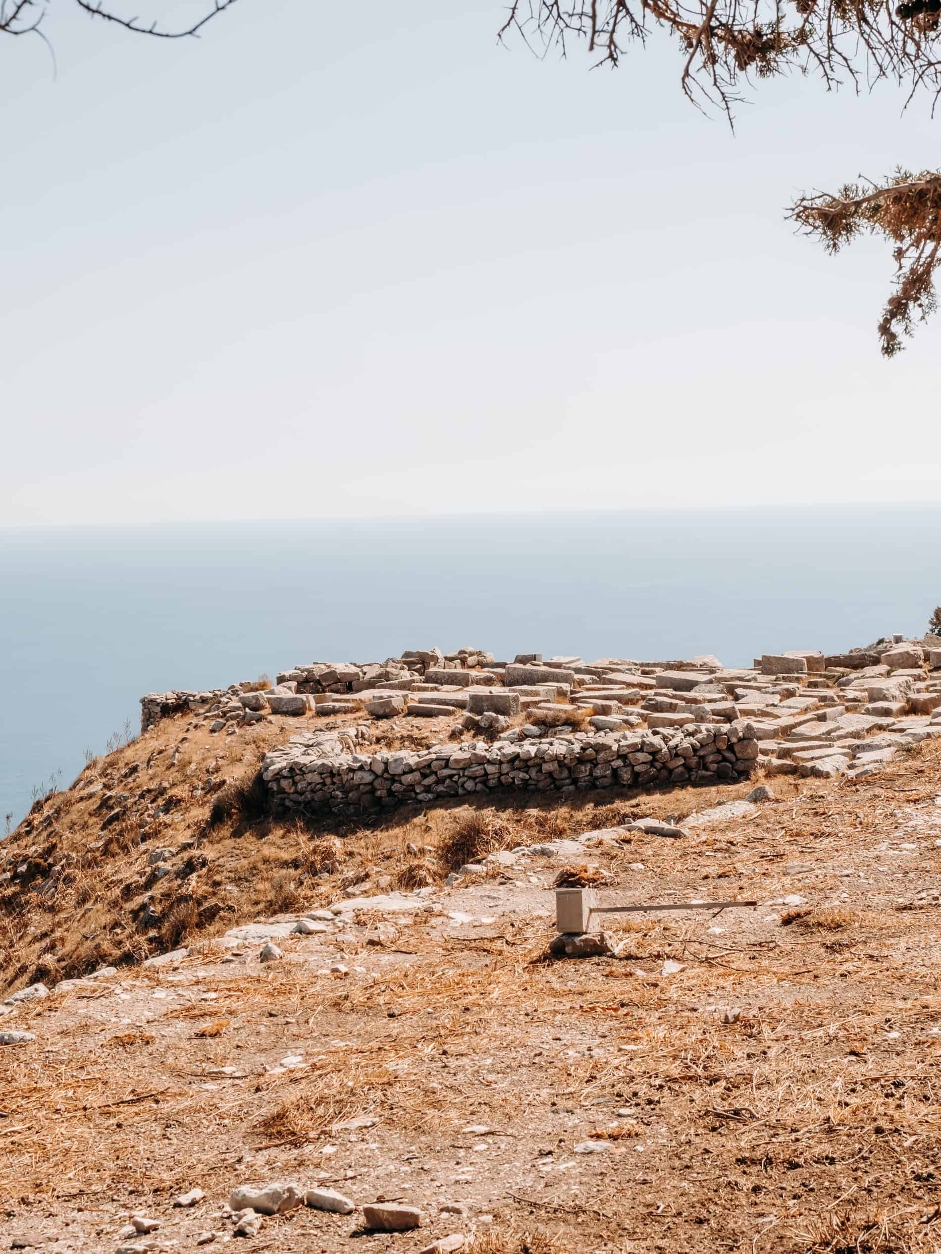 Et enfin si vous voulez faire une visite à ciel ouvert, n’hésitez pas à monter tout en haut de la grosse colline de Mesa Vouno qui domine la mer de presque 400m pour découvrir les ruines à ciel ouvert de l’ancienne Théra (parfois noté Thira). La  zone est entièrement exempte de constructions modernes et la vue sur la mer est exceptionnelle. Au programme, du vent et un panorama somptueux avec vue plongeante dans la mer Égée. C’est somptueux.
