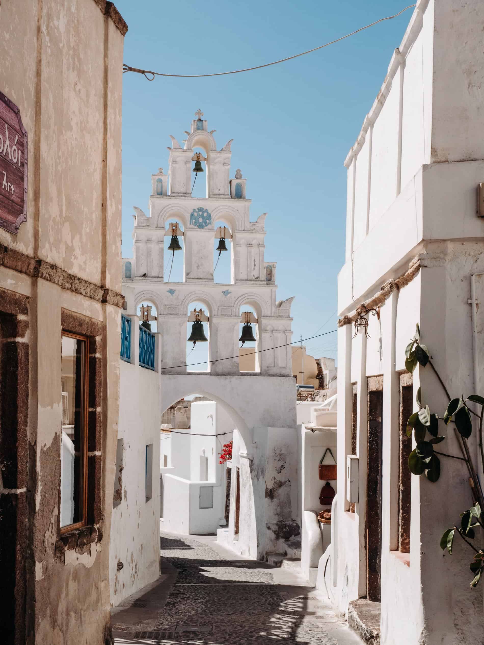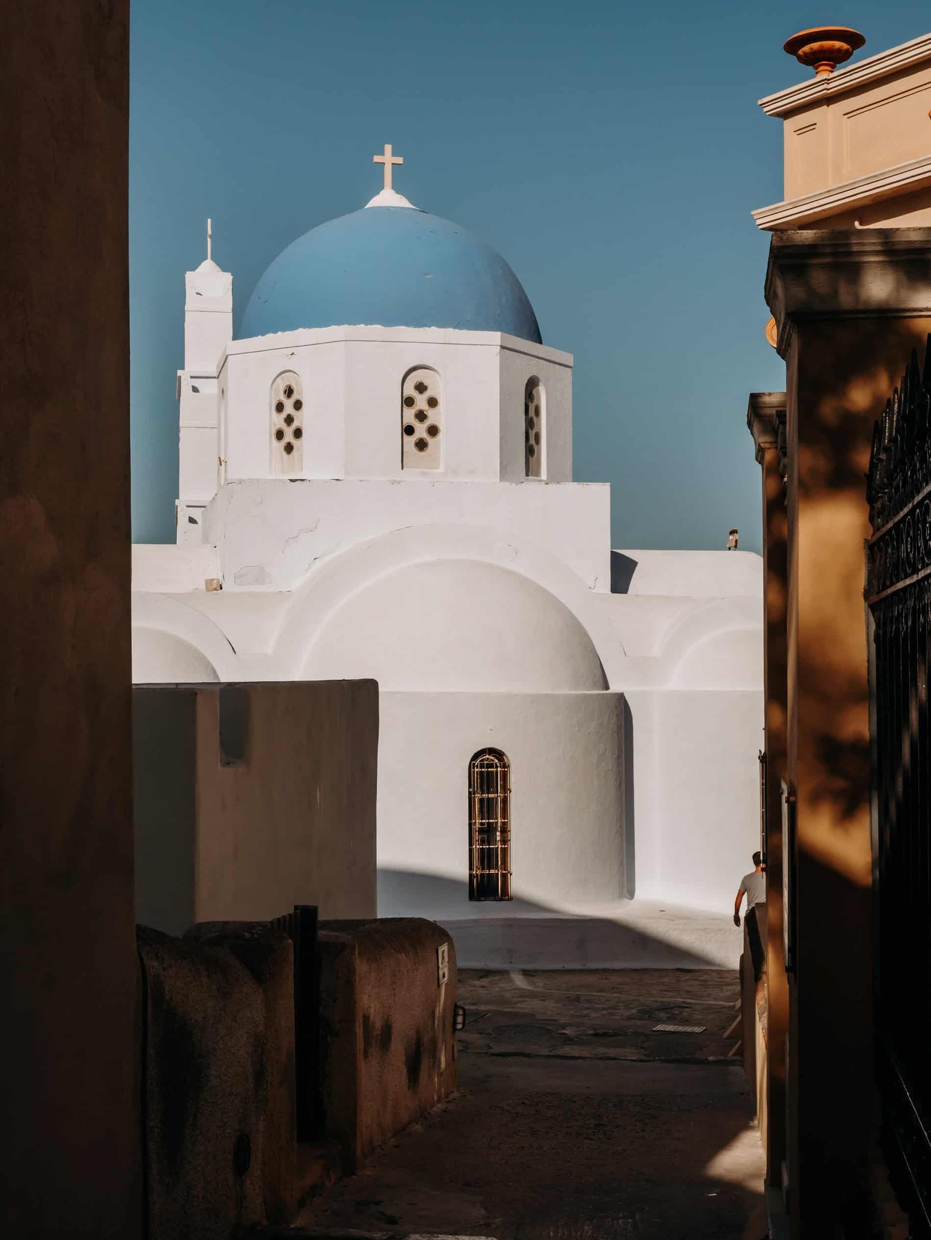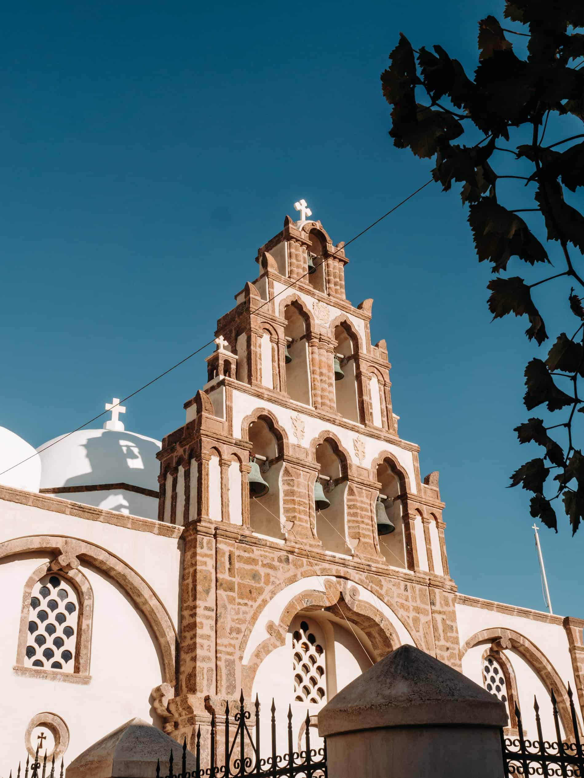Ce village pittoresque, niché au cœur de l’île, est une véritable immersion dans la culture cycladique. Avec ses ruelles pavées, ses maisons troglodytiques et ses charmantes églises à clochers imposants, Megalochori est une halte idéale pour les amateurs d’authenticité. Il abrite également plusieurs domaines viticoles où l’on peut déguster les célèbres vins de Santorin. Flâner dans ses ruelles ombragées et s’arrêter dans une taverne locale pour savourer des spécialités grecques est une expérience incontournable.