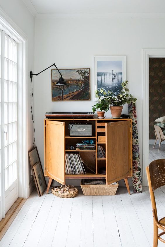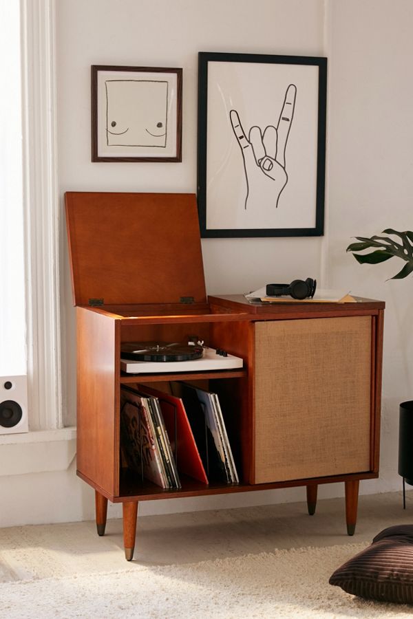 Je suis toujours fan de ce qu’ils font chez Urban Outfitters, ils proposent d’ailleurs des vinyles et des platines…en terme de meuble, j’avais craqué pour le joli meuble aux allures vintages que je vous montre ci-dessous mais il est sold out ! Sinon, il existe des solutions de rangement plus simples comme cette étagère pour disques vinyles.
