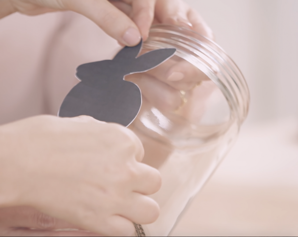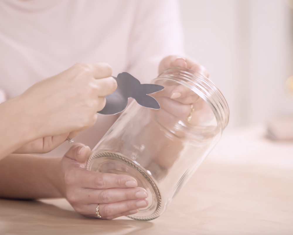 2. Coller le gabarit sur le bocal (astuce : dégraisser le verre pour une meilleure adhérence)
