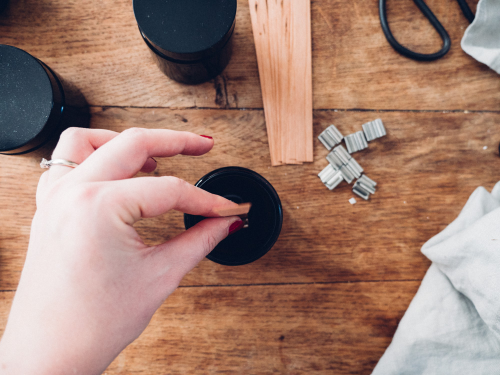 Couper la mèche en bois au raz du pot pour pouvoir y remettre le couvercle.
