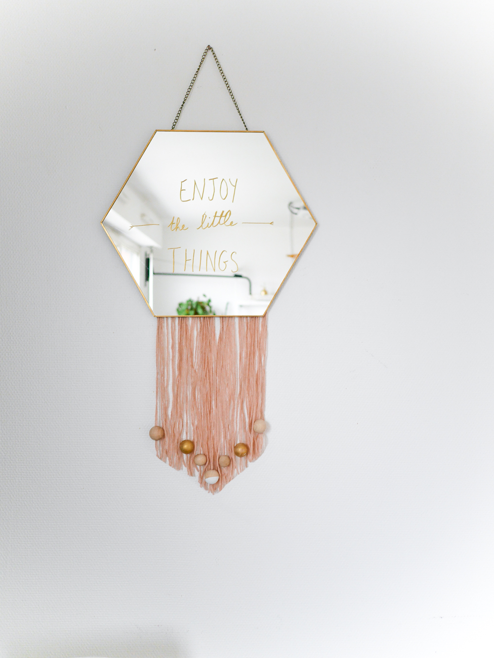 Re-bonjour, j’espère que vous allez bien ! On continue le makeover de ma chambre dans un esprit hygge, doux et poétique avec ce petit DIY tout simple à réaliser pour customiser un miroir. Dans ces inspirations un peu bohème, il  s’agit simplement ici de réaliser un miroir tissé.