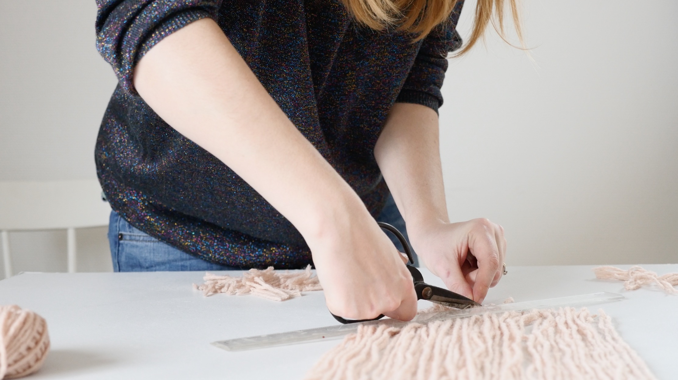 5. Couper la laine pour suivre la forme des perles. Je me suis aidée d’une règle.