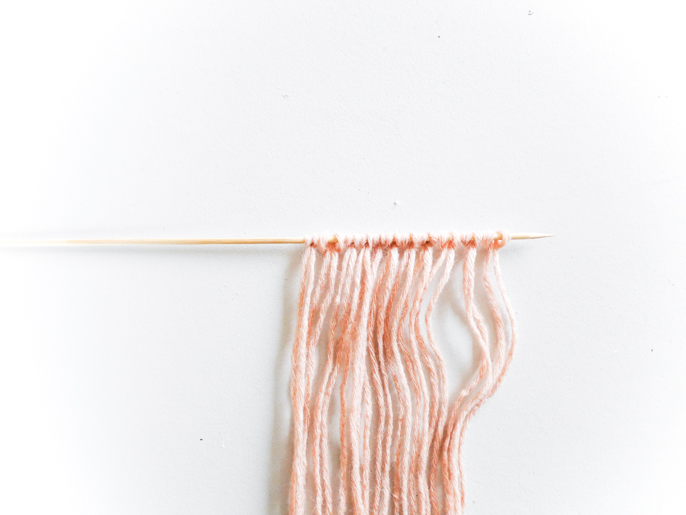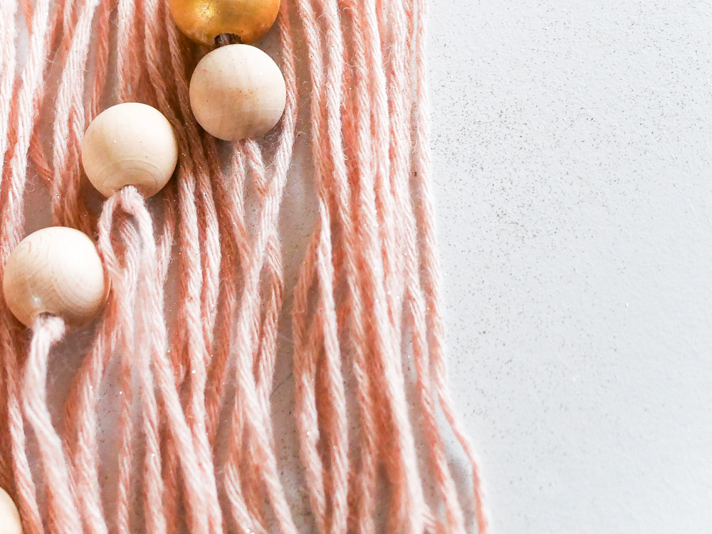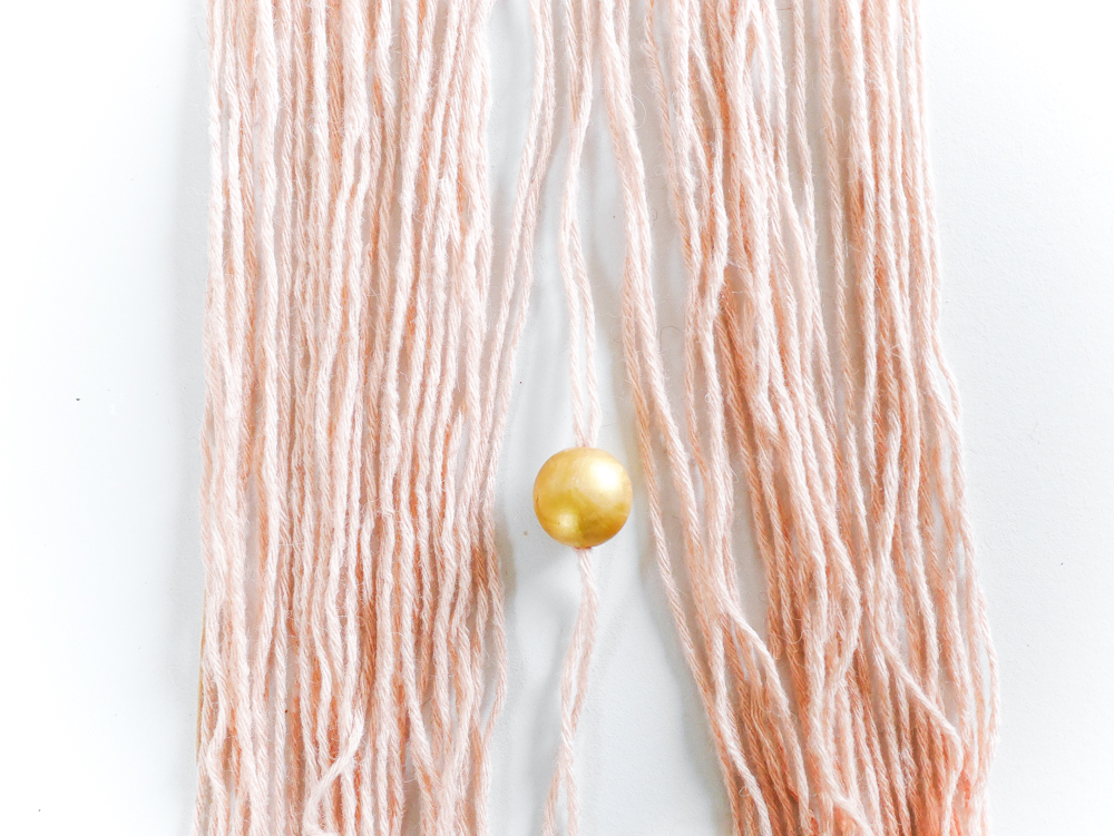 C’est très simple et demande peu de temps et d’argent. Je voulais prendre de la laine plus épaisse mais les perles ne rentraient pas…j’ai donc trouvé ce bon compromis avec cette jolie laine rose.