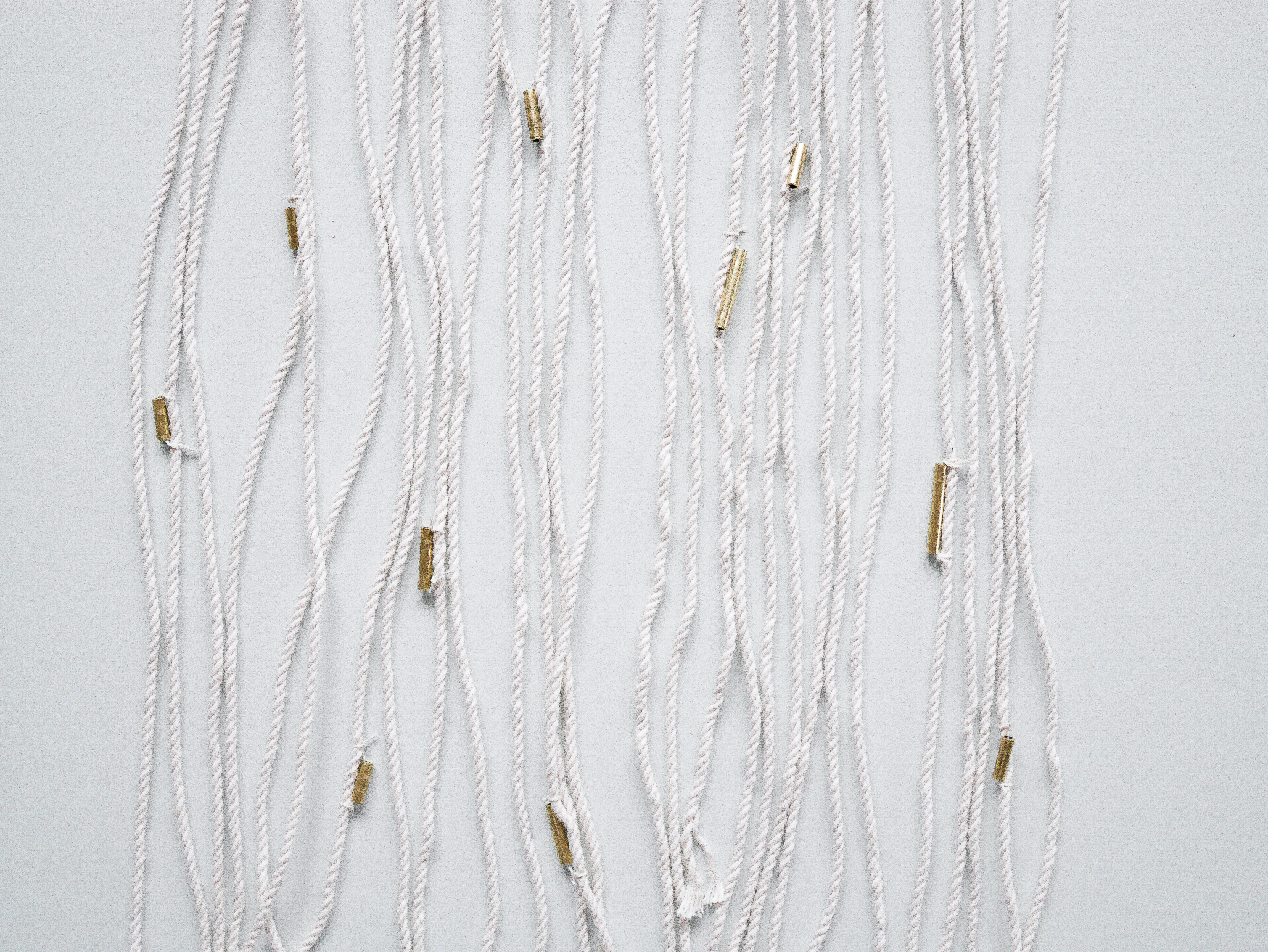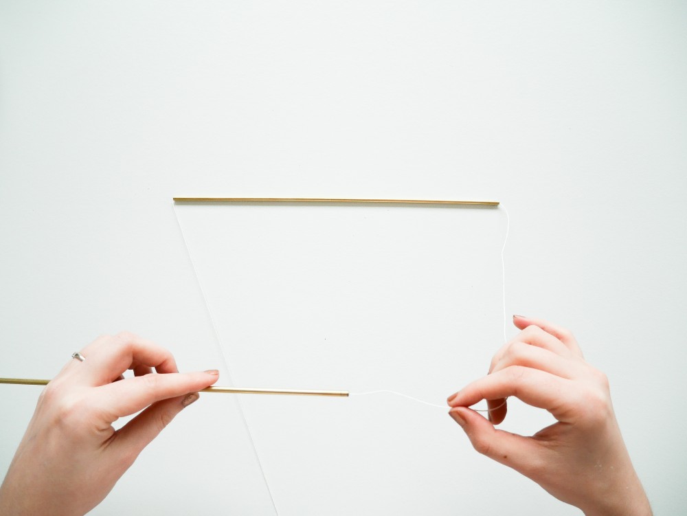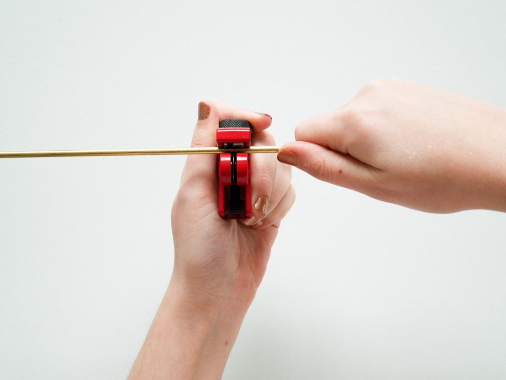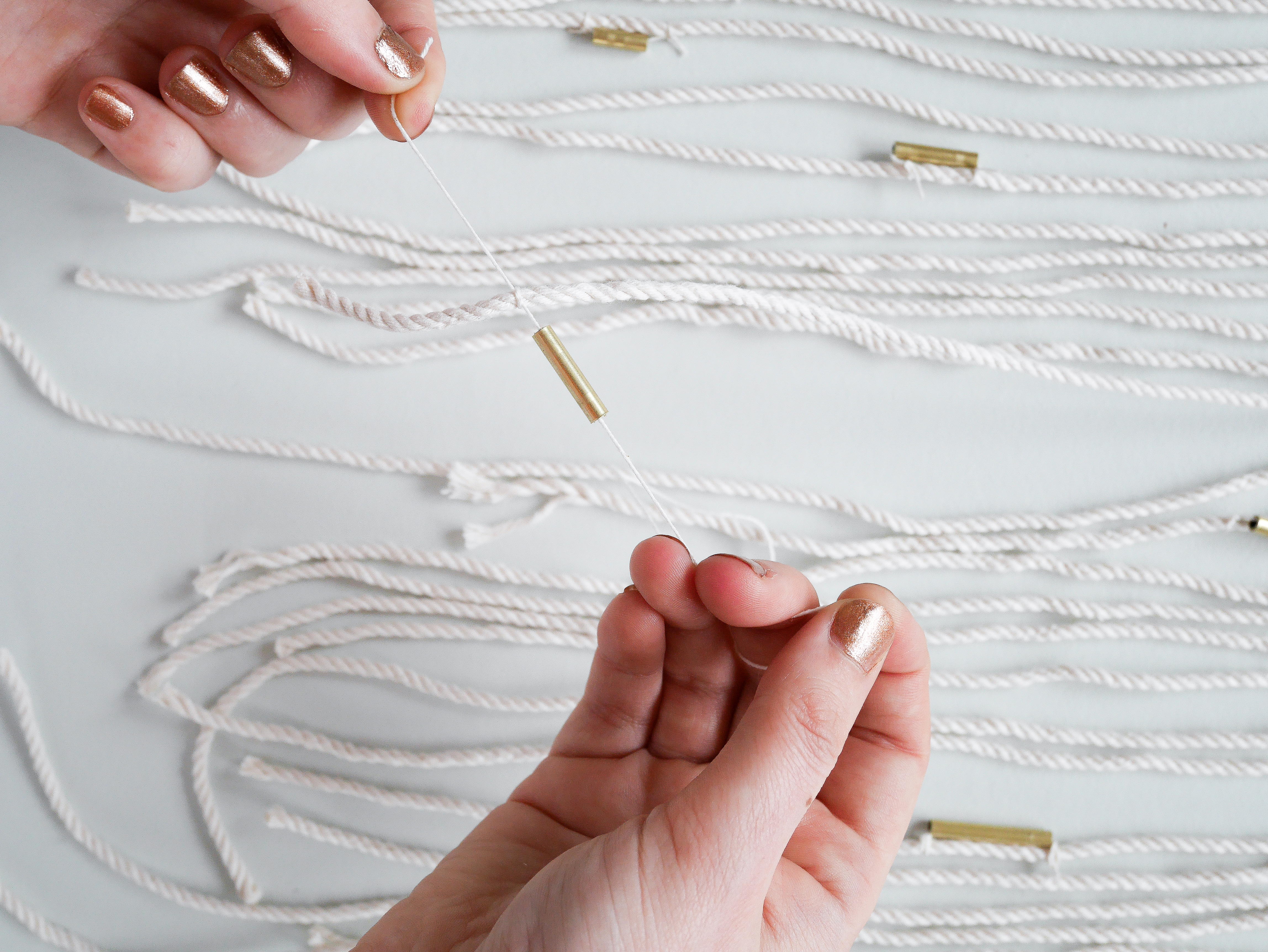 Couper les tubes de laiton de plusieurs dimensions pour ensuite les accrocher à l’aide de la ficelle sur les brinds de corde