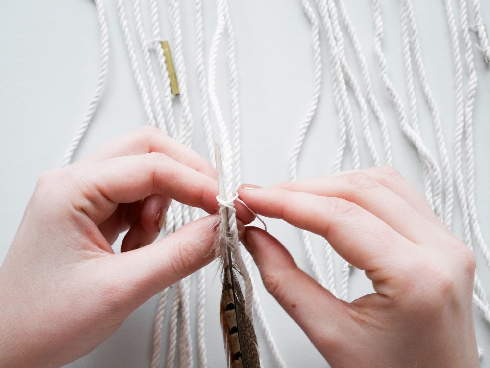 Je vous propose de découvrir aujourd’hui une des créations réalisées en collaboration avec Leroy Merlin, un dreamcatcher macramé. Avec Leroy Merlin c’est une histoire d’amour puisque c’est l’endroit où nous passons bon nombre de week-end, il y a même un vendeur qui nous a bien reperé. Ahahah Alors lorsqu’ils m’ont proposé de faire partie de la team pour un projet chouette avec eux je n’ai pas hésité…Bien au contraire ! Ici, il s’agissait de créer un dreamcatcher ou « grigri » mural dans un style gypsy, bohème et folk. L’idée était de pouvoir réaliser cet objet mural qu’avec des produits Leroy Merlin. Je n’ai pu m’empêcher d’y mettre des plumes. En effet, comment parler de dreamcatcher et de bohème sans plumes? J’ai eu envie de créer une forme à la fois graphique, moderne et de mêler une technique que j’aime beaucoup, le macramé. Il ne s’agit donc pas d’un dreamcatcher comme on peut en trouver ailleurs…Vous me direz ce que vous en pensez…