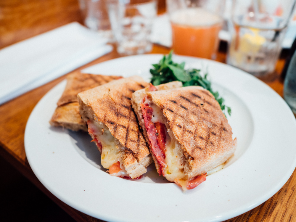 Côté assiette, la carte a été élaborée par Daniel de la Falaise, furieusement frenchy dans son approche avec comme devise No transformation : un mot d’ordre simple auquel se conforme le chef. Mieux, comme tous s’accordent à le dire : pas de transformation, plutôt de l’assemblage. On retrouve des plats comme le croque demoiselle aux oeufs de caille, des planches « garde-manger », une salade de buratta et des paninis le midi. J’aurai bien aimé testé le croque demoiselle mais je me suis dirigée vers la salade. J’ai beaucoup aimé la sélection de fruits pressés, de limonades artisanales et de thés glacés. La compote de pommes en dessert est délicieuse. Et puis mention spécial pour le service et l’accueil hyper chaleureux !