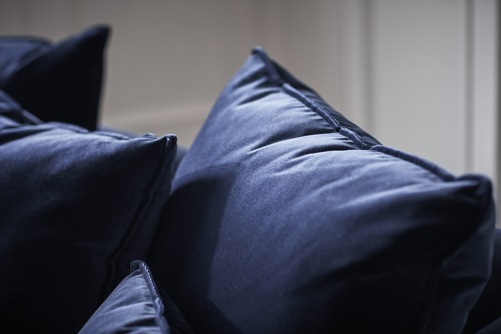 J’aime les canapés cosy et profonds tout en velours, le mobilier en bois clair et rotin, les lignes épurés du verre soufflé. Le bleu de la vaisselle est si profond. J’adore aussi le rendu des nouveaux coussins aquarelle réalisés par la designer Hanna Dalrot. Cette nouvelle collection est un plaisir pour les yeux mais aussi pour le toucher, elle me donne envie tout toucher. Bref, vous l’aurez compris je suis conquise.