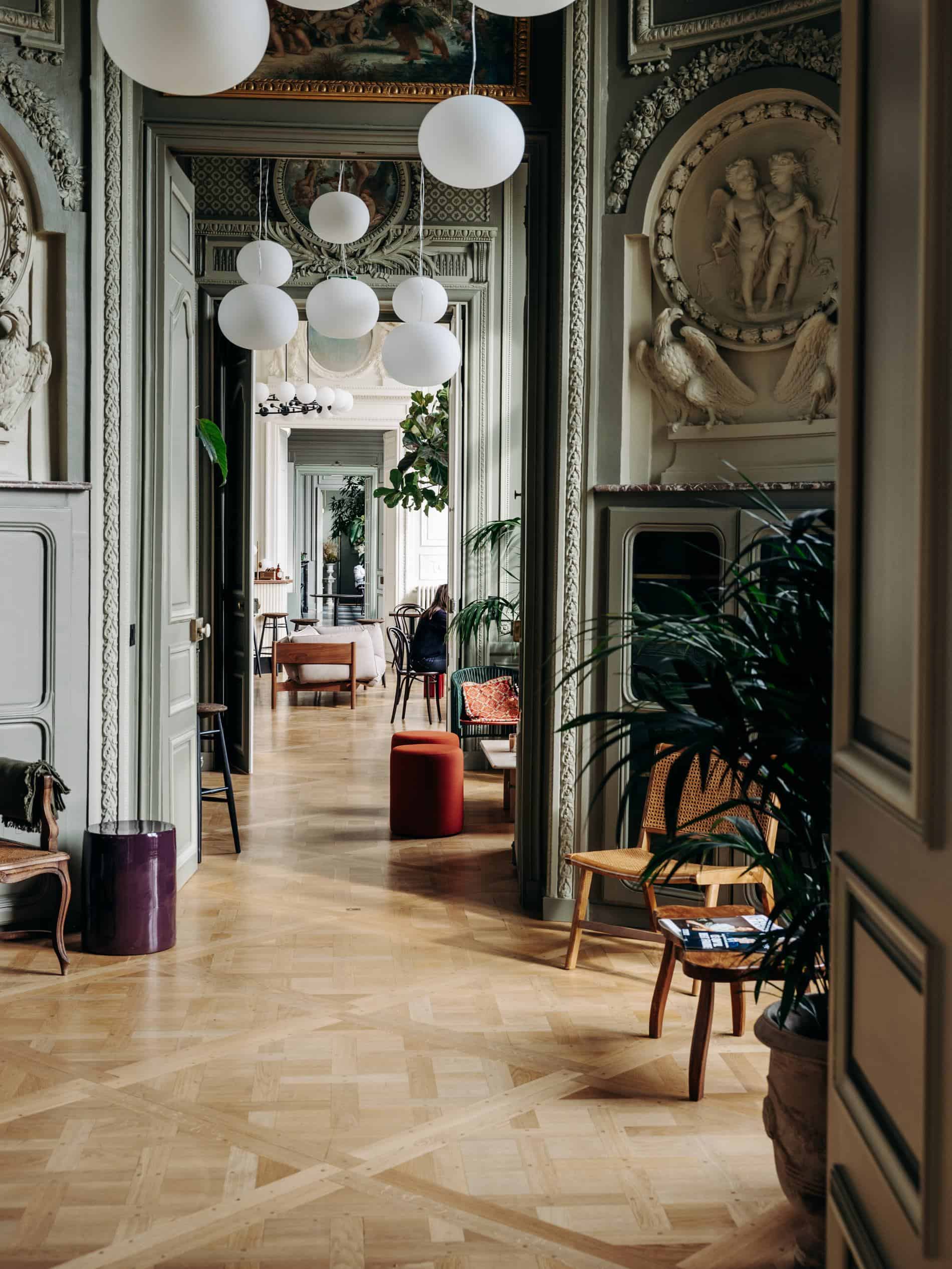 Côté déco, c’est l’agence d’archi d »intérieur En Bande Organisée qui a donné le ton de cet endroit fabuleux. A la fois contemporain tout en respectant l’ancien et l’histoire de ce lieu, tout est beau et pensé dans les moindres détails : gros coup de coeur pour la bibliothèque, les salons, les pièces ont chacune leur propre pâte.