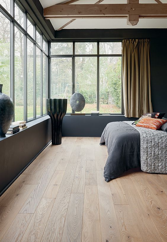 Sombre : dans des essences tel que le wengé, il crée une ambiance japonisante. Le chêne lui ira avec tout, ce sont les motifs qui définiront l’atmosphère de votre pièce. Le parquet sombre est un pont entre la tradition et la modernité, il est donc extrêmement adaptable et c’est le mobilier qui fera la différence.