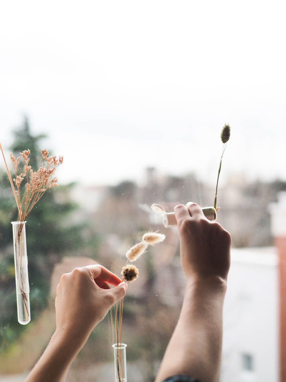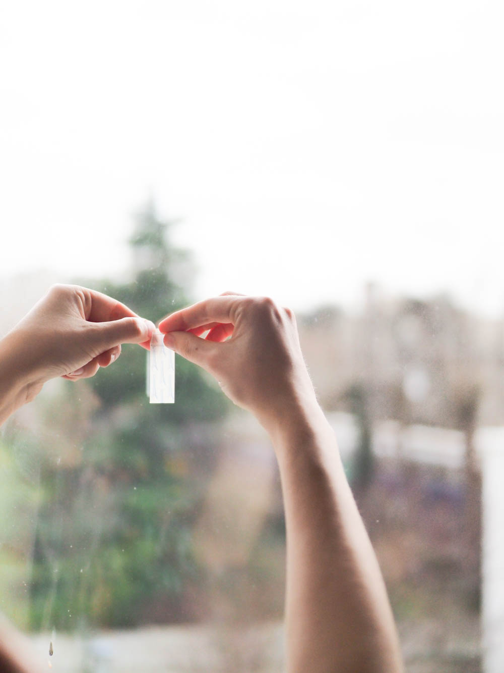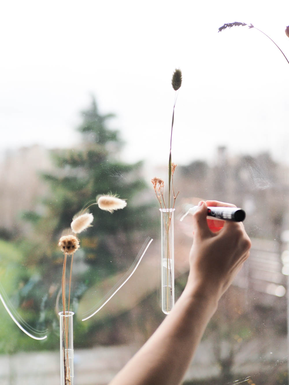 Pour ce DIY, comme je vous le disais plus haut, j’ai utilisé des languettes adhésives tesa pour verre mais les crochets adhésifs tesa sont très bien aussi surtout si vous avez des fioles avec un bord courbé. Ces languettes et crochets sont hyper pratiques pour décorer les fenêtres et murs, vous n’avez pas besoin de percer et ils sont hyper resistants. J’ai utilisé plusieurs fois les produits tesa dans la maison et ils sont de très bonne qualité!
