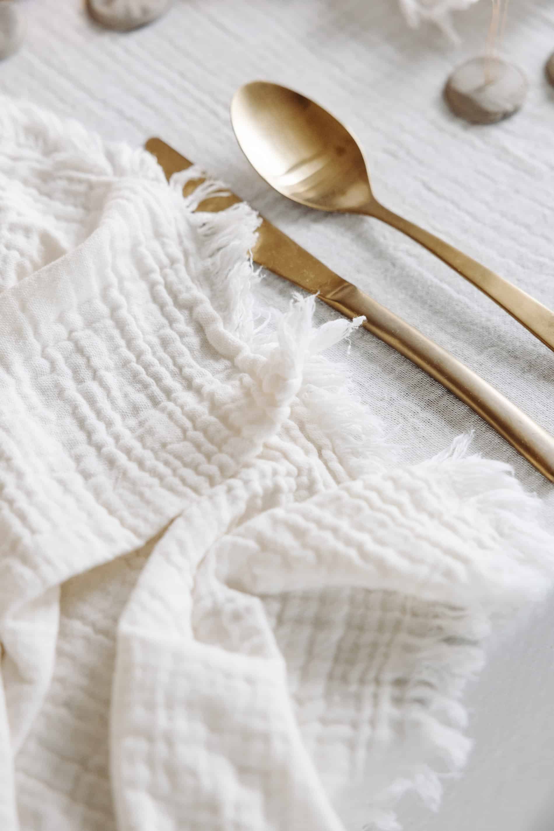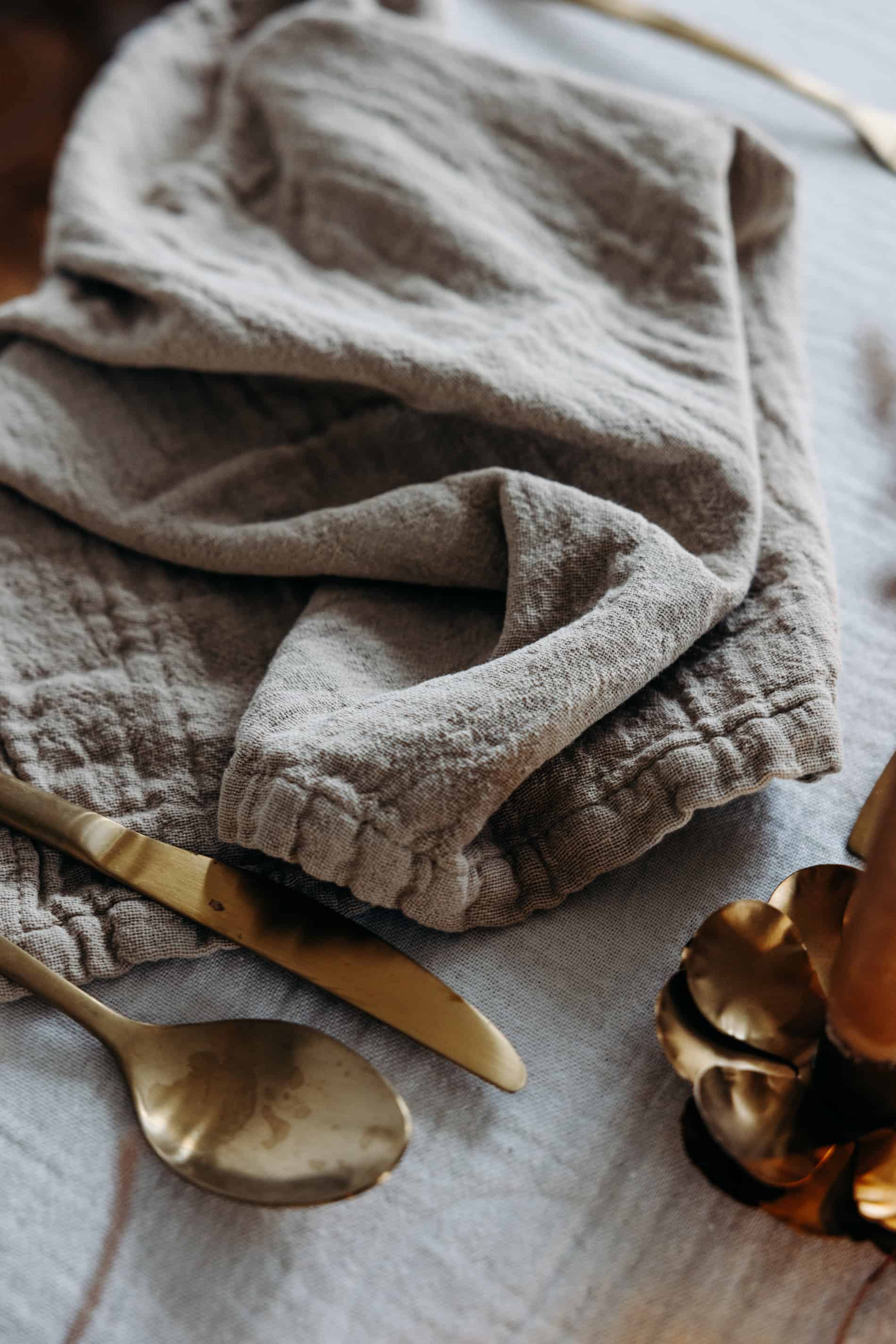 Enfin, pour le textile, j’ai voulu de jolies matières douces et réconfortantes, et quoi de mieux que les jolies nappes et serviettes de chez Autumn Paris. J’ai leur linge de lit et je suis fan du tombé et du touché de leurs produits.