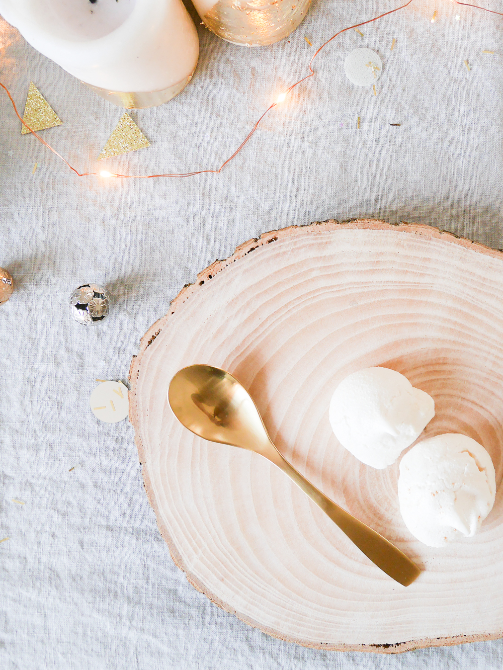Pour le shopping déco, j’ai trouvé mes couverts en or Chez Les Voisins, ma jolie nappe en lin chez Linen and Milk, la plateau en bois chez Knieja Wood, la lune lumineuse chez Le Repere des Belettes, des jolies produits de chez House in May et pour le reste n’hésitez pas à me demander…
