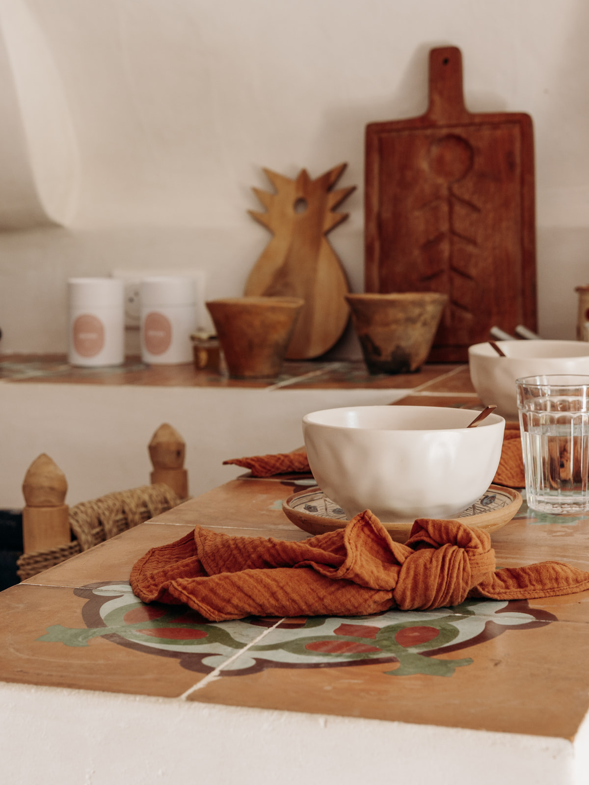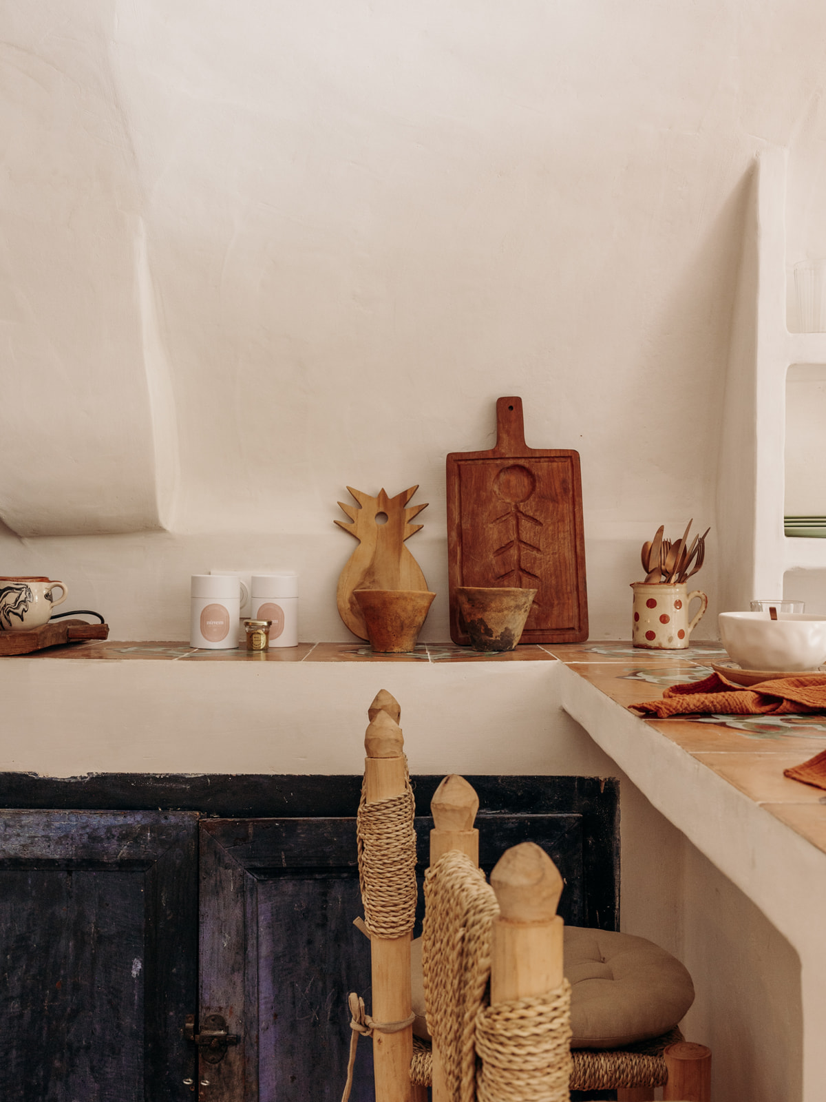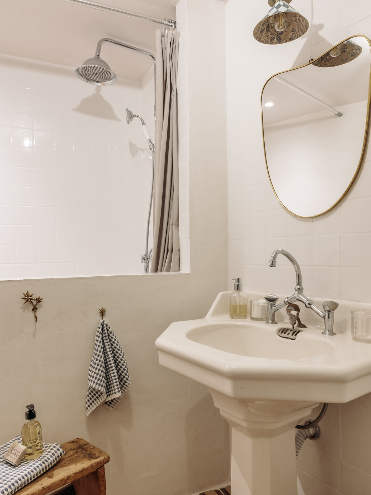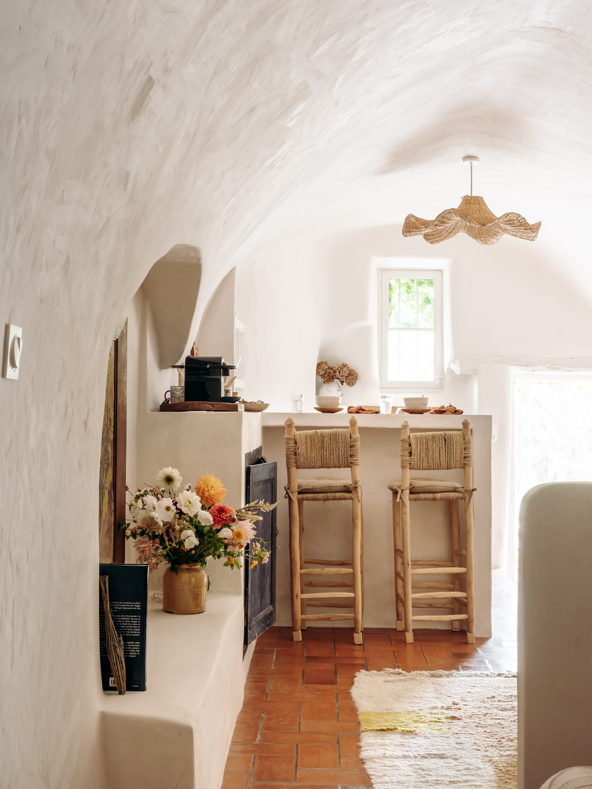 Le plafond voûté a été le coup de coeur de Clotilde qui lui donne un air de maison troglodyte méditerranéenne. Là encore, la pâte de Clotilde est là, on retrouve des matériaux anciens, des pièces chinées et des objets de créateurs qu’elle adore.