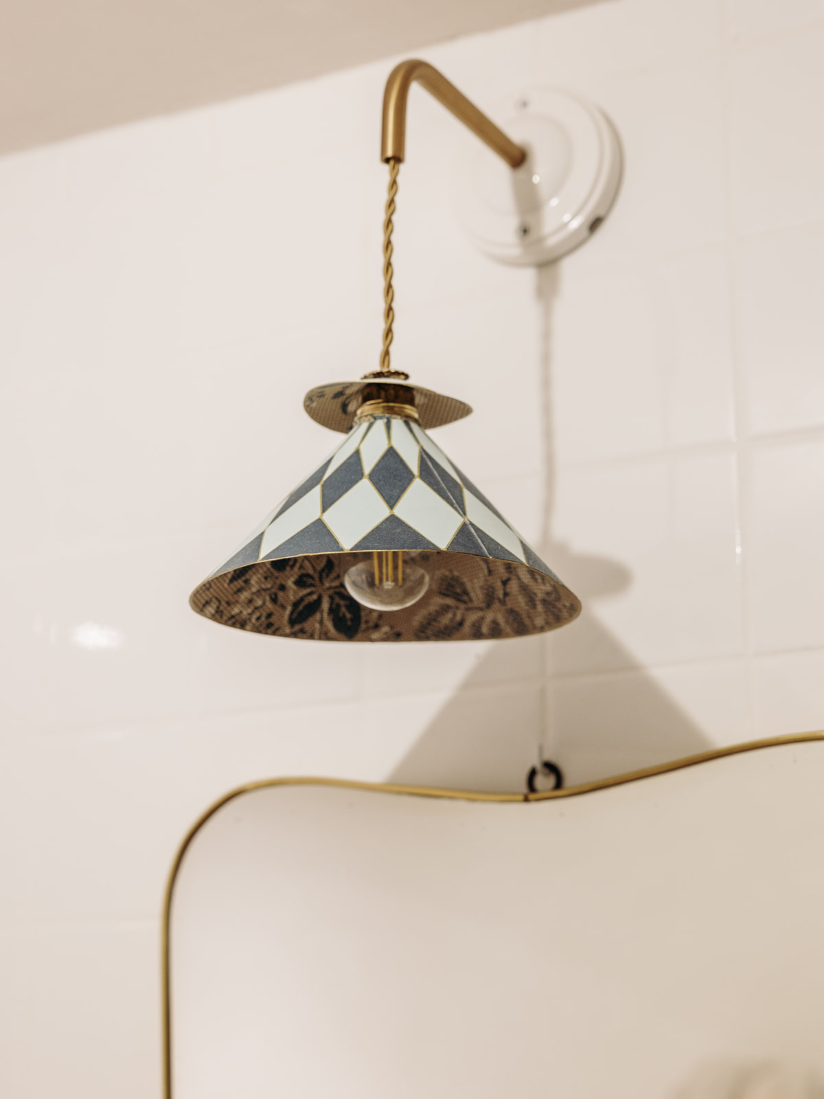 Côté créateur, on retrouve les jolies suspensions Atelier Maché et dans la salle de bain Around Five O Clock. Des jolies coussins à partir de tissus anciens fleuris de chez Rose et les textiles d’Annabel Kern. Bref, de très jolis choix qui se marient à merveilles avec les pépites chinées par Clotilde.
