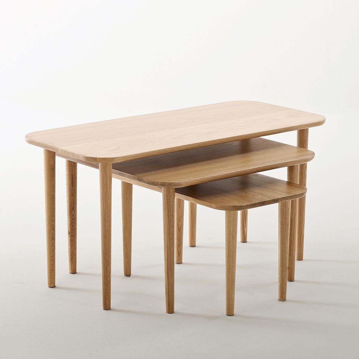 Moi c’est les petites tables en chêne de La Redoute que j’aime particulièrement !