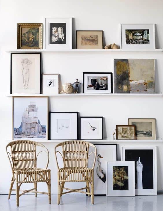 Pour afficher ses photos comme des oeuvres ou des tableaux, rien de mieux qu’imprimer ses photos sur un papier haute qualité ou sur toile et des disposer sur des mini-étagère spécial photo ou appelées communément cimaise comme ils peuvent le faire à Ikea. C’est très simple à réaliser et surtout quelle fierté d’y mettre vos plus beaux clichés.