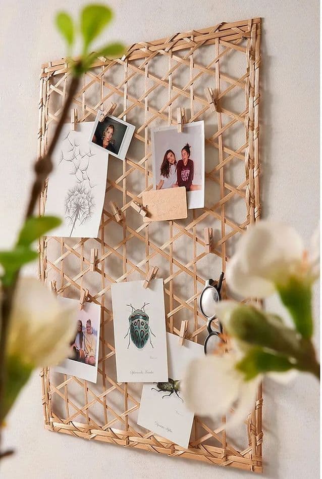 Pour prolonger l’esprit vacances, on succombe pour ce pêle-mêle en bambou, léger et aérien. Son tressage reprend la forme d’un cannage XXL, parfait pour exposer photos et souvenirs de voyages.