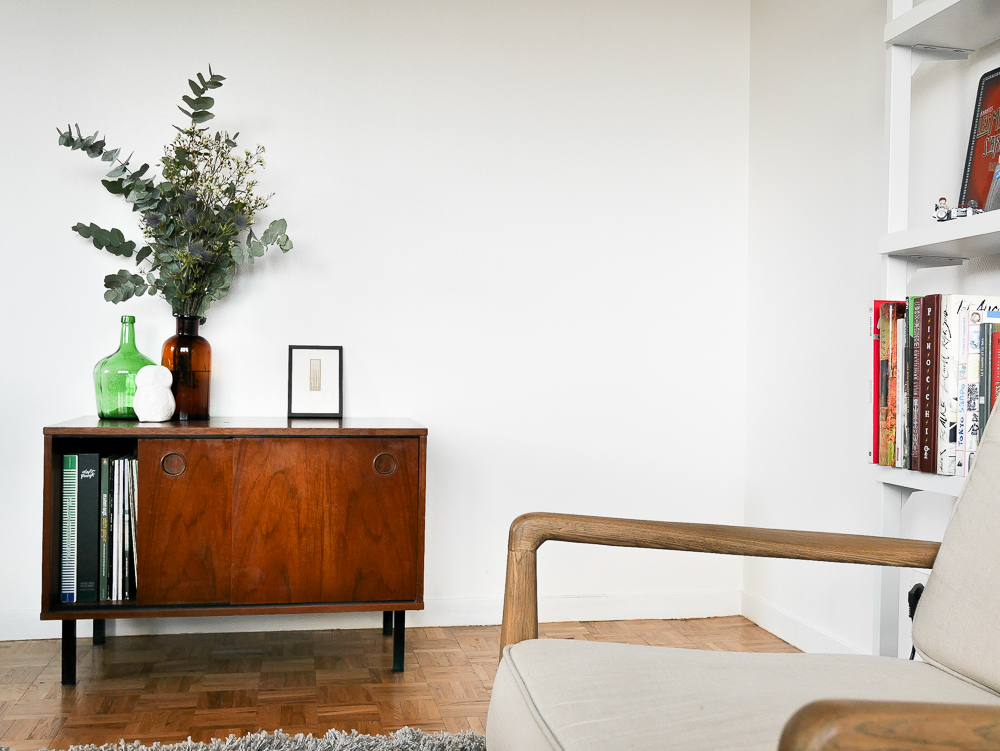 Sinon l’aménagement de notre petit cocon avance tranquillement mais surement ! Je vous présente aujourd’hui mon petit meuble vintage de chez JADA. Il s’agit d’un meuble vintage à vinyles, style enfilade mais en petite taille. J’ai complètement craqué dessus!