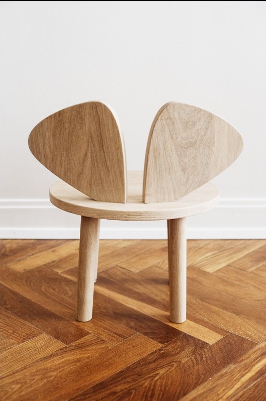 Pour rester dans le bestiaire, il y a la magnifique chaise souris de NoFred. Cette petite chaise avec de grandes oreilles de souris me fait craquer. En plus, elle est réalisée dans du chêne brut, elle est trés robuste et facilement maniable. Parfaite pour les enfants.