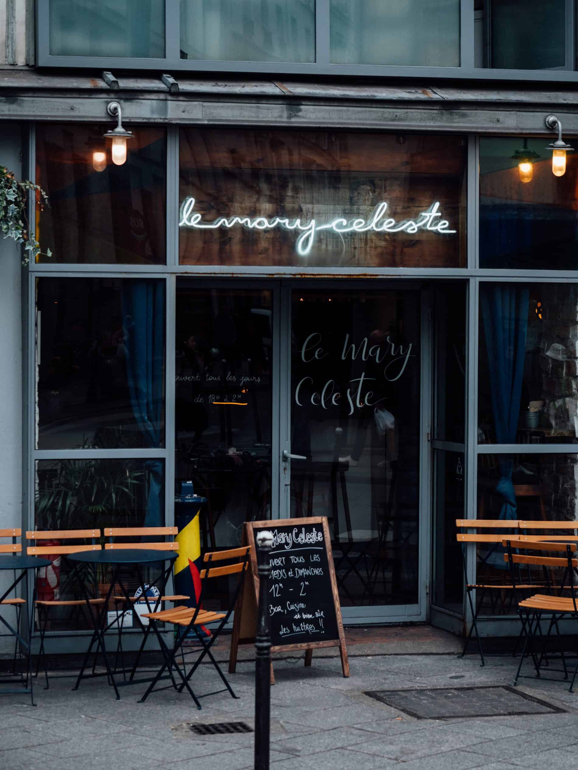Le Mary Celeste : j’adore cet endroit où l’on peut déguster de très bons cocktails ou verres de vin au comptoir et manger de délicieux plats.