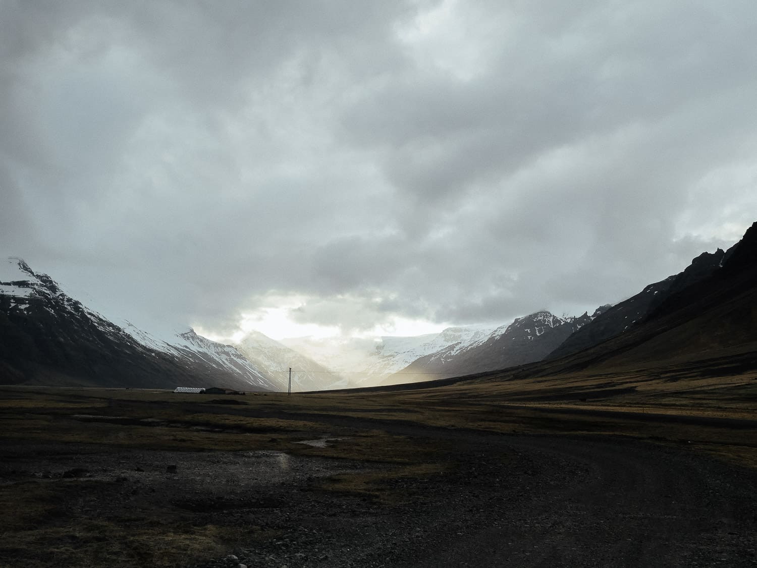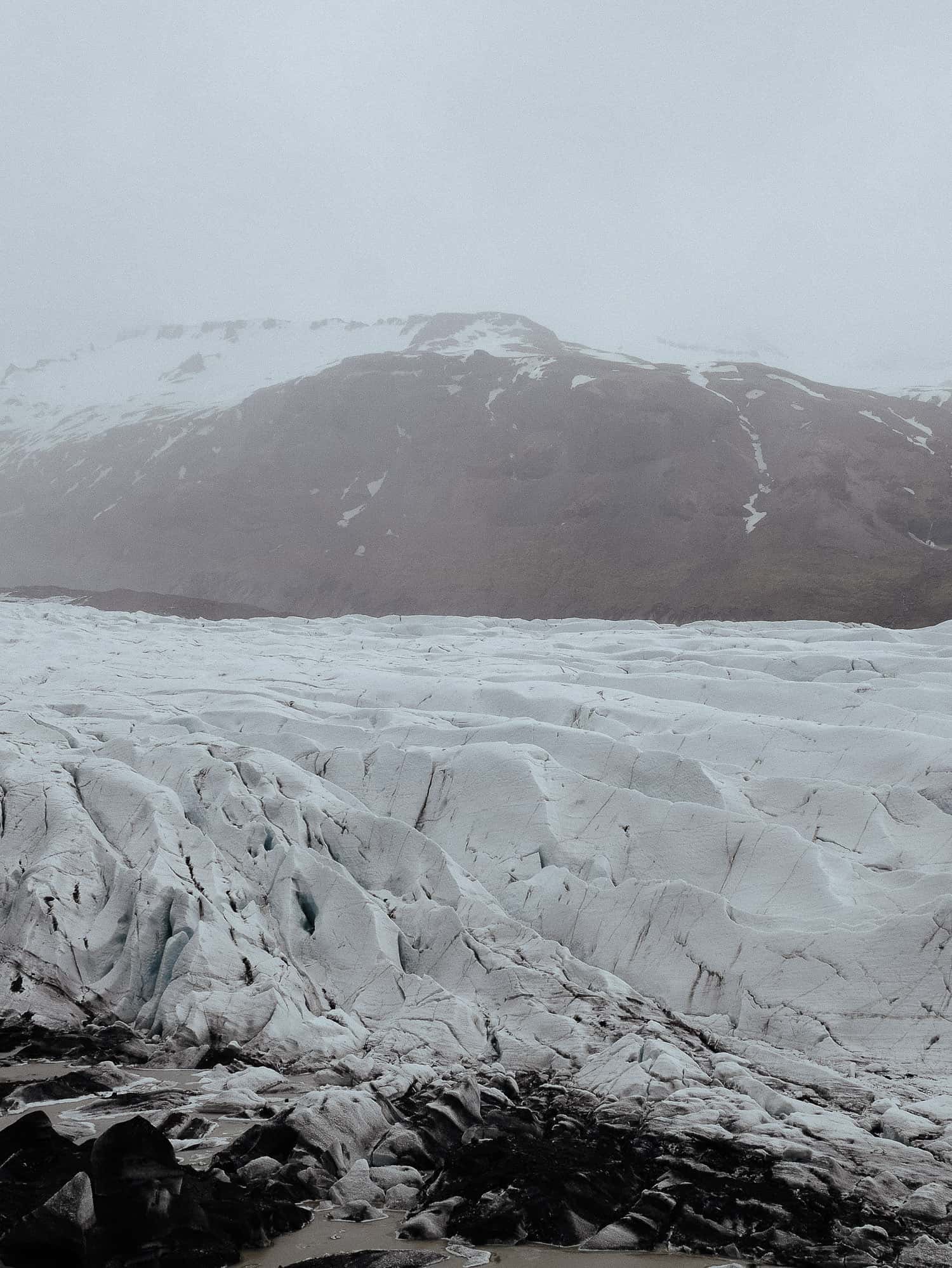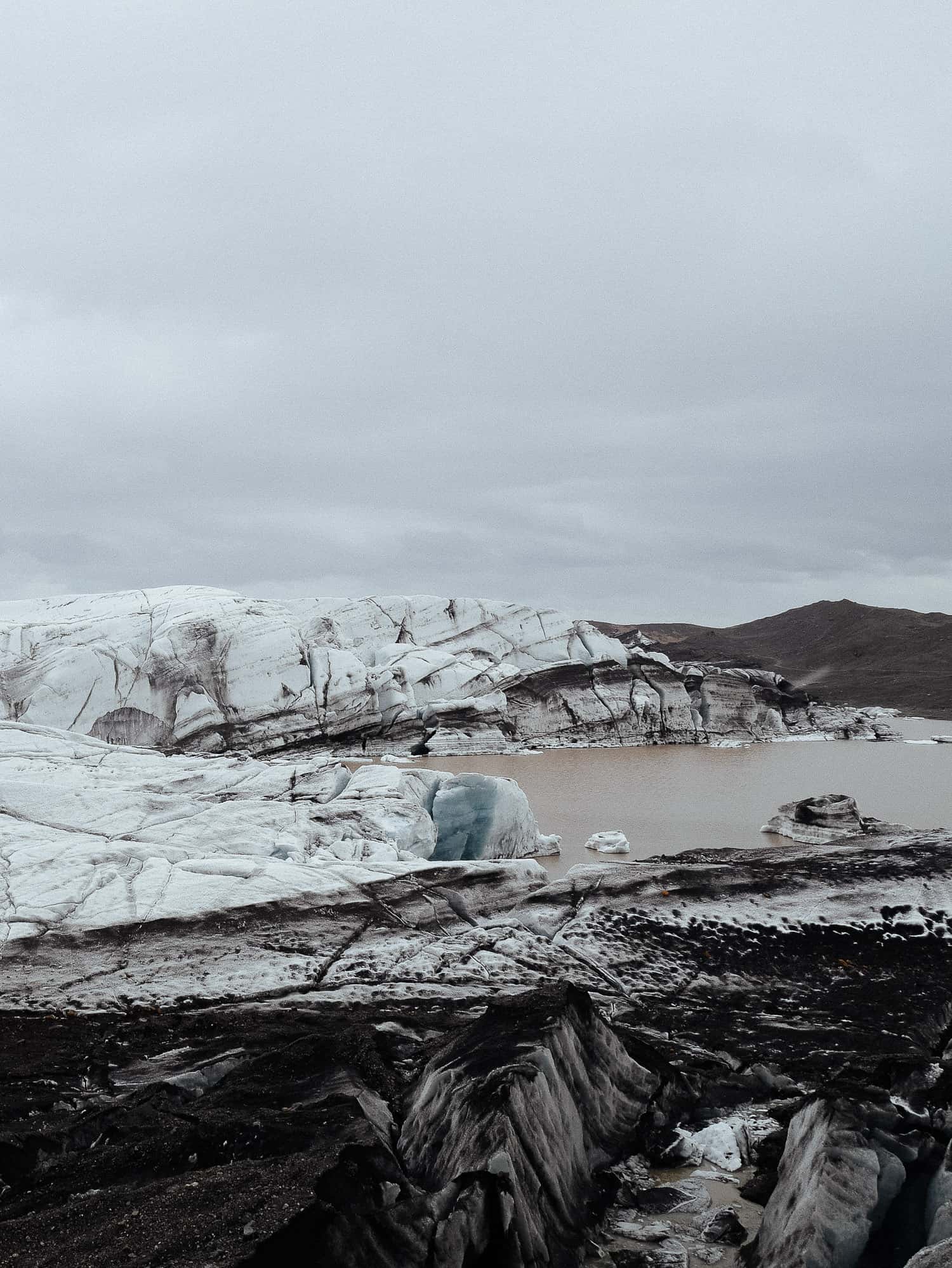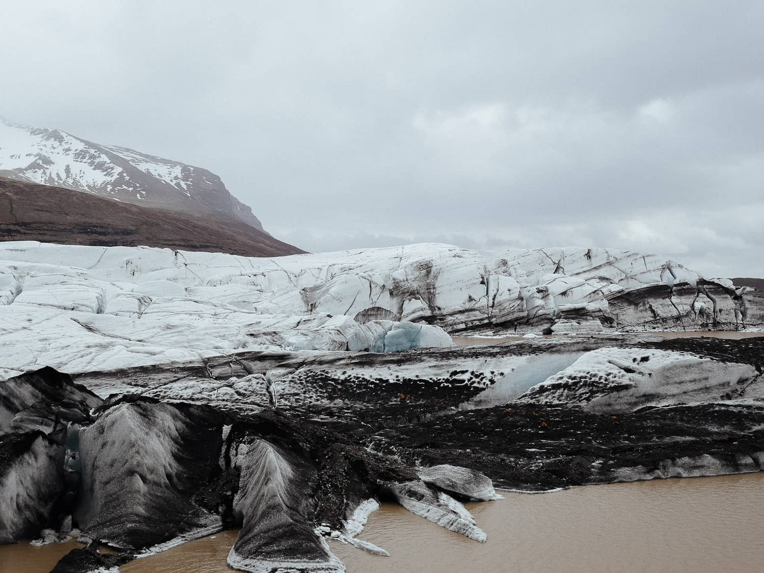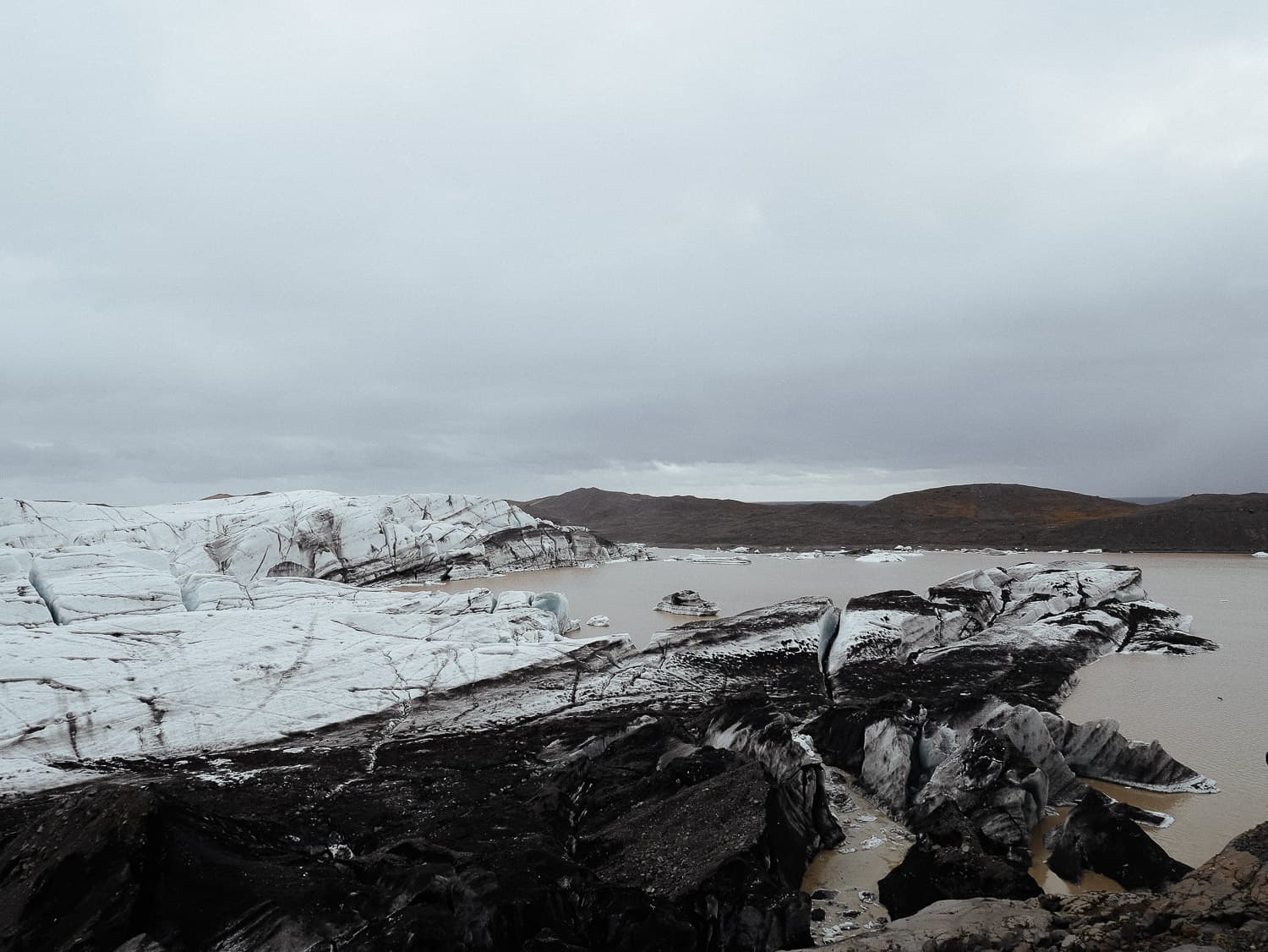 Nous partons de notre petite cabane au milieu de nul part pour nous diriger vers une première lange de glacier, celle de Sólheimajökull. Elle est l’une des plus faciles d’accès, et est très prisée pour ses treks. Et c’est vrai, qu’arrivés là-bas, nous apercevons des petits groupes prêts à monter sur la glace. Pour y aller, il faut prendre la route 222, une piste pleine de cailloux qui mène à un parking avec un café (il était fermé mais il doit ouvrir pendant l’été). De là, il y a une petite marche de 800 m pour arriver jusqu’à la lange glacière. Epoustouflant !