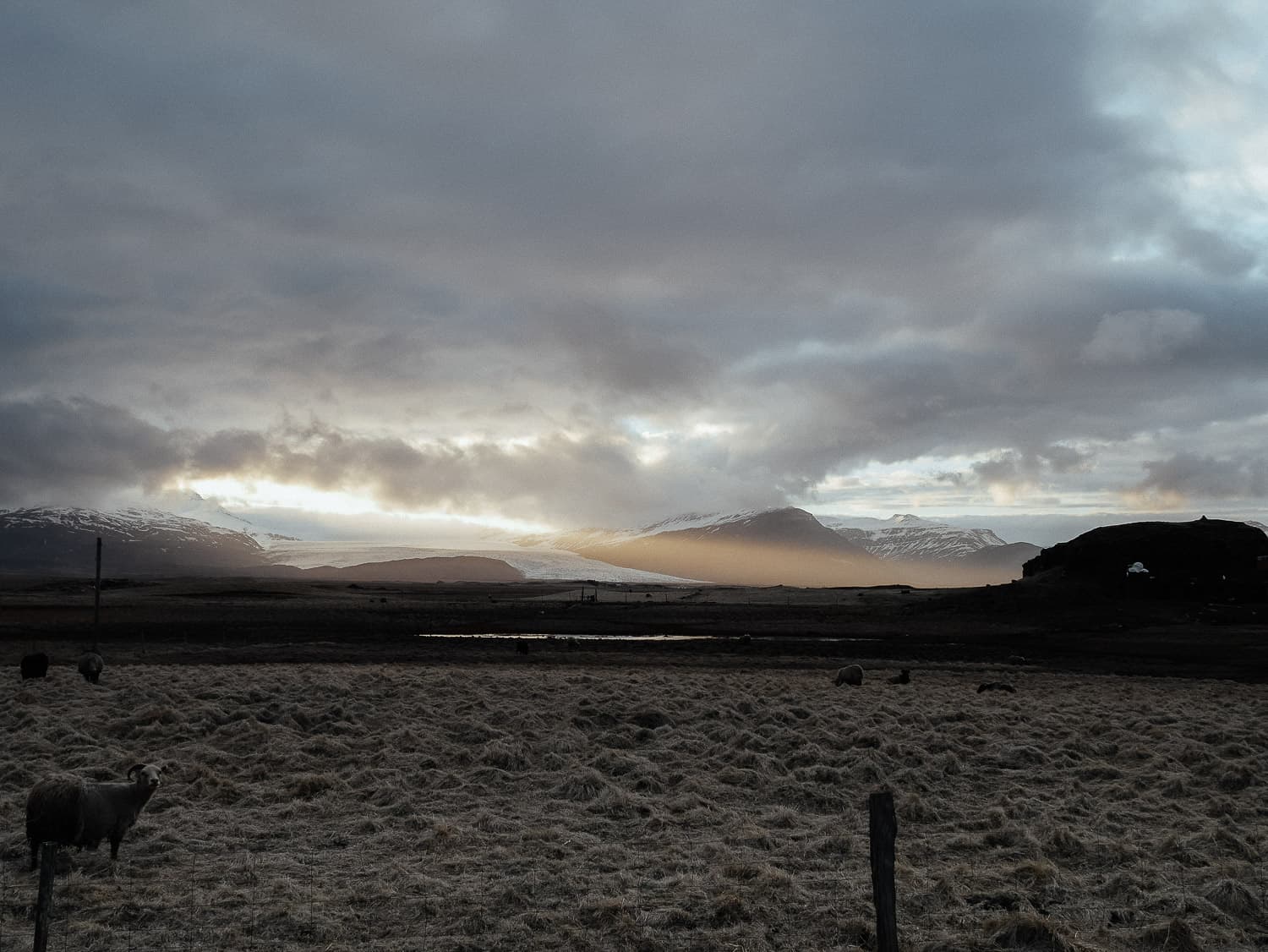 Pour ce jour-ci nous allons passé par les déserts, pour arriver dans notre guesthouse, elle-aussi dans le désert, ou du moins pas loin. Nous commençons par Dyrholaey, très connue des touristes. Il fait un soleil magnifique, sur la plage nous sommes à l’abri du vent, et ça, c’est vraiment agréable. Après un burger sur Vik, nous sommes prêts à affronter les sandar, ces plaines désertiques d’Islande. D’abord un désert de sable noir, avec quelques plantes jaunes qui contrastent, puis un désert recouvert d’une mousse verte : nous sommes à Eldhraun. C’est un désert de lave suite à l’éruption du Laki, il est immense et les légendes racontent qu’il est hanté. Sur la route, on aperçoit des mini tornades, on a un peu les chocottes qu’elles arrivent sur nous mais finalement tout va bien et c’est tant mieux.
