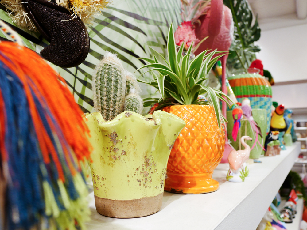 La boutique propose donc un patchwork de couleurs, des combinaisons de matières et une association originale de formes et de lignes, traditionnelles et modernes. On y trouve la nouvelle collection printemps-été invitant au voyage. Des coussins en wax, des masques péruviens, des vases en forme de cactus…tout est là pour avoir un été haut en couleur dans la maison !