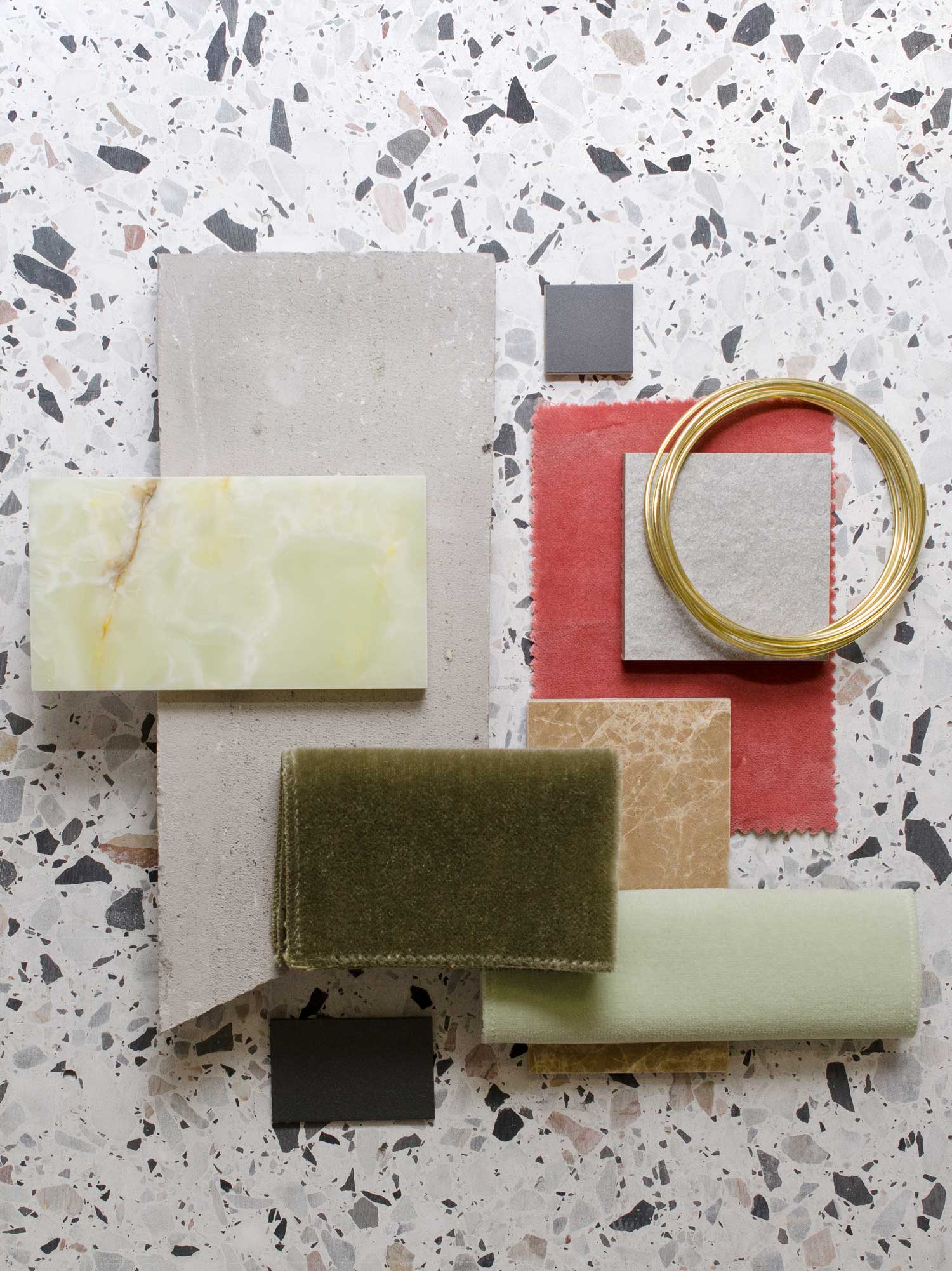 Tout de même, avoir un mur, un plan de travail ou un sol en terrazzo implique de nombreux travaux. Alors les designers ont imaginé pleins de manière de l’intégrer dans la déco sans avoir à passer à de gros travaux. On retrouve par exemple du mobilier en terrazzo, du papier-peint, des textiles avec ce motifs…