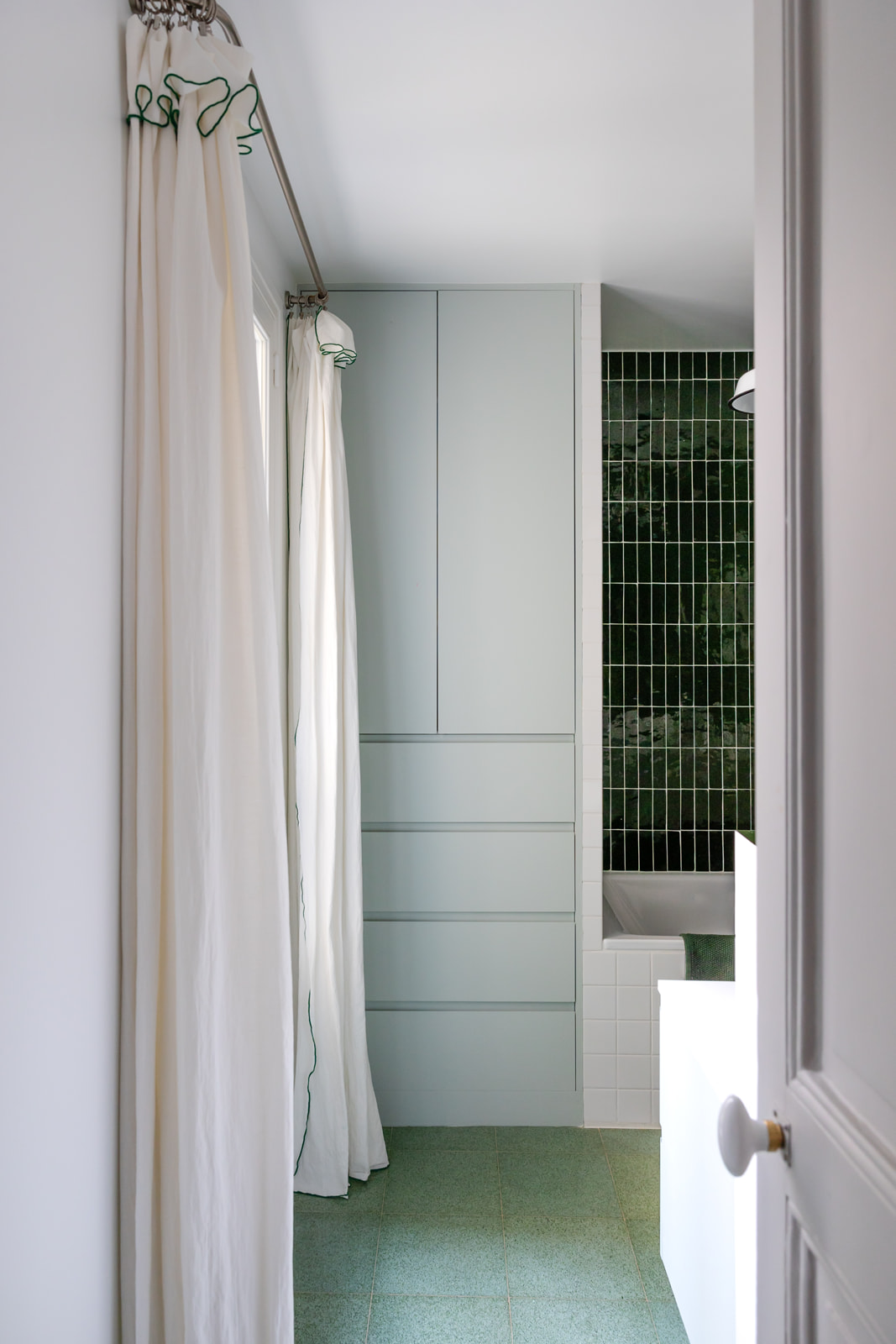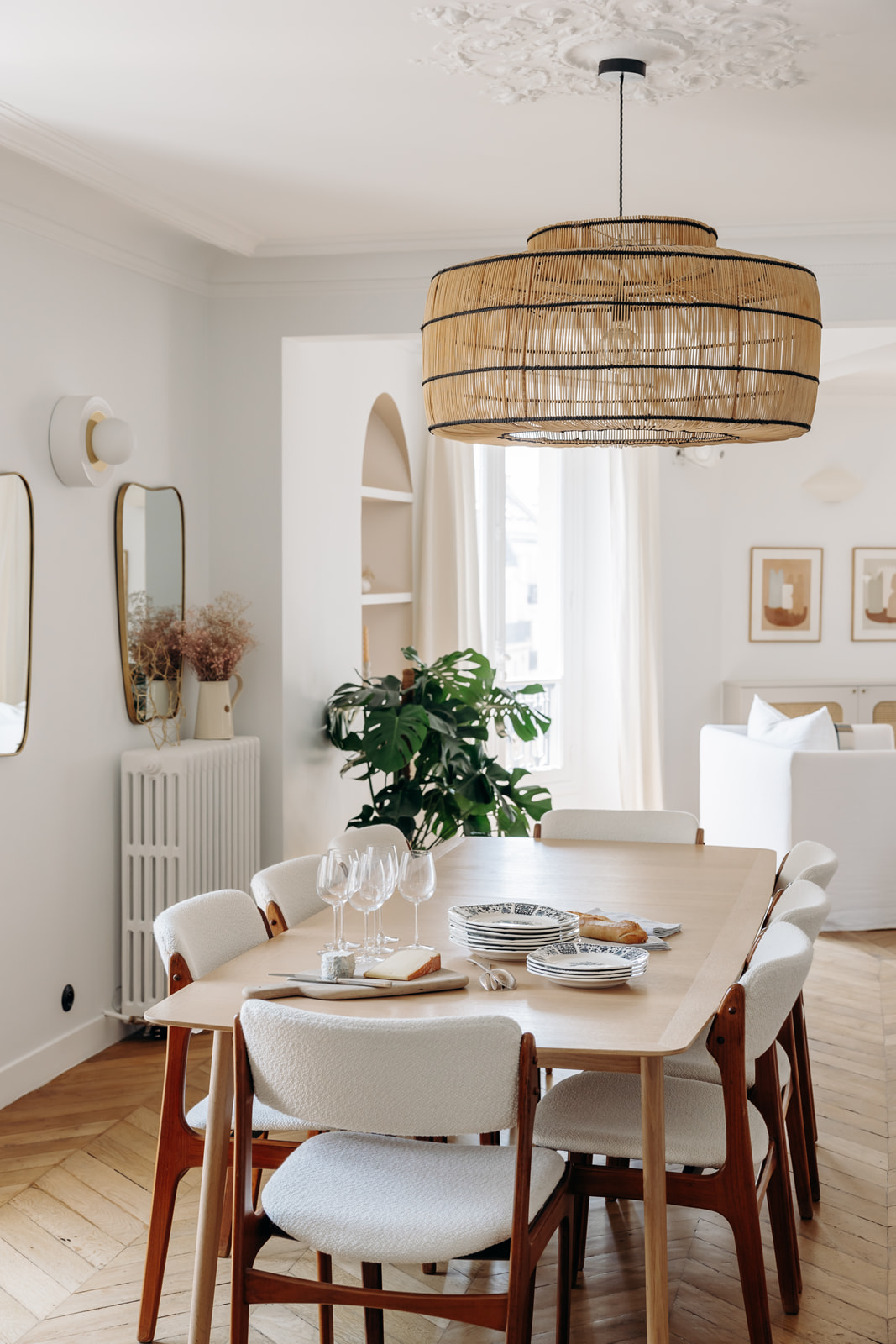 Cet appartement a absolument tout pour plaire, il est en angle, dans une rue calme et est baigné de lumière. Il y avait certes beaucoup de travaux à prévoir mais c’était un défi et une aubaine pour Marine qui pouvait en faire son terrain de jeu. L’espace a donc été entièrement restructuré pour en créer un cocon parfait pour accueillir toute la famille.
