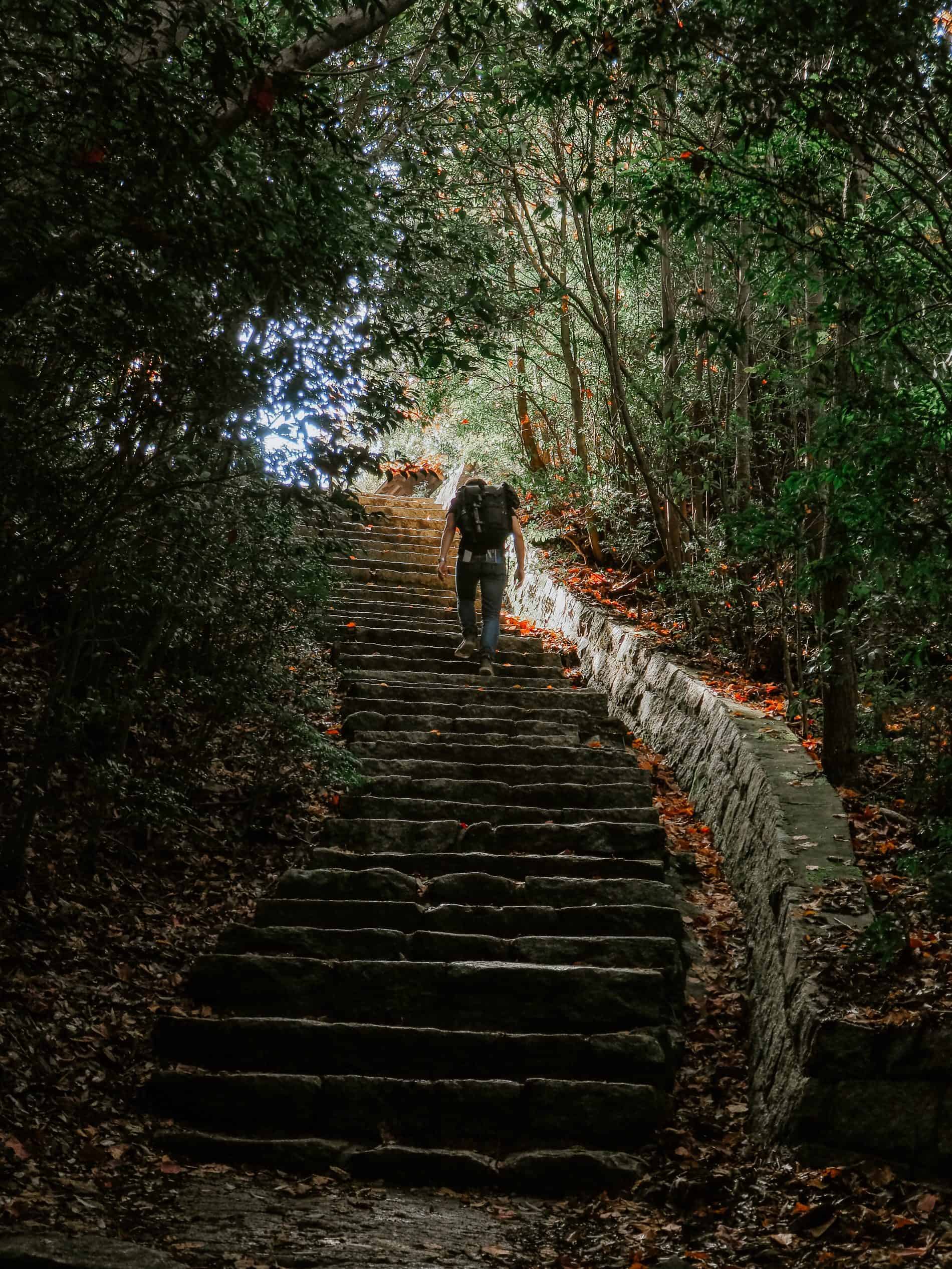 Il faut savoir que gravir le mont Misen à pieds n’est pas de tout repos. Vraiment ! Soyez équipés !
