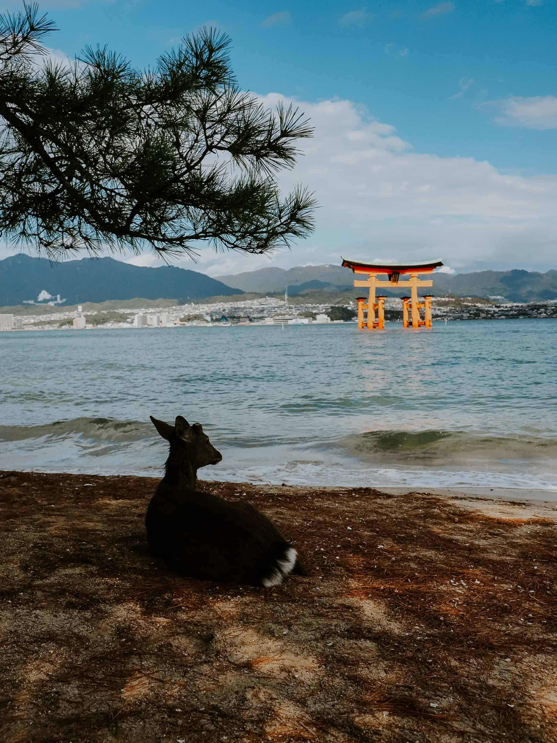 Miyajima (ou Itsukushima) c’est une petite ile de la baie d’Hiroshima et qui est dans le top 3 des plus beaux paysages nippons. Ce n’est pas faux, cette petite île est absolument magnifique. C’est une île sacrée qui est connue à travers le monde pour son immense torii dans l’eau et ses biches. C’est aussi un lieu extrêmement touristique. C’est pourquoi nous y sommes allés en pleine semaine et pourtant il y avait foule. Vous êtes prévenus!