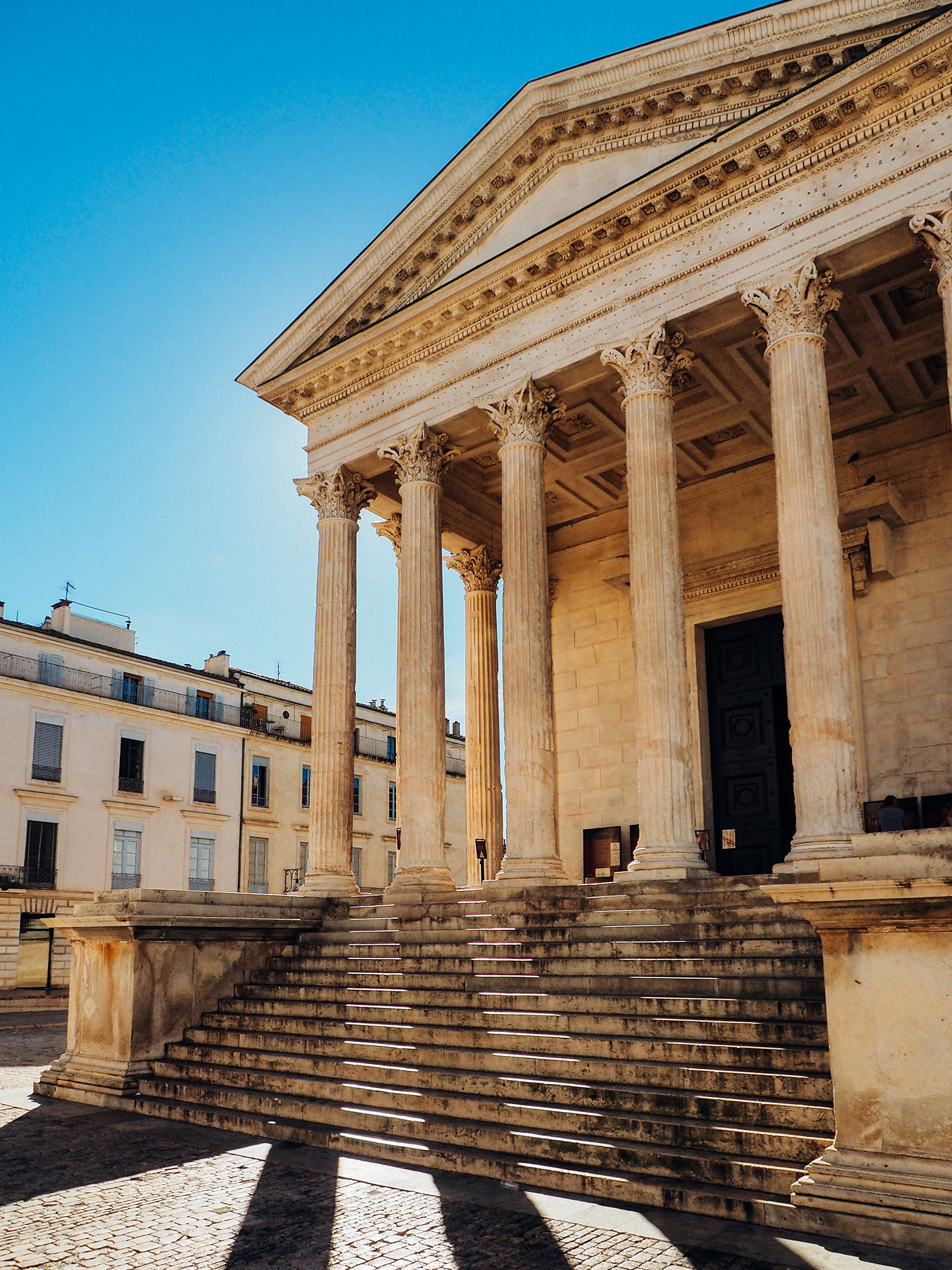 Autre joyau de Nîmes, La Maison Carrée est un temple romain hexastyle édifié au début du 1er siècle. ce temple a été construit pour Auguste à la gloire des ses deux petits fils. La maison carrée a changé de fonction au fil des siècles : maison conculaire, temple, musée, et c’est ce qui fait qu’aujourd’hui, elle est le temple romain le mieux conservé au Monde.