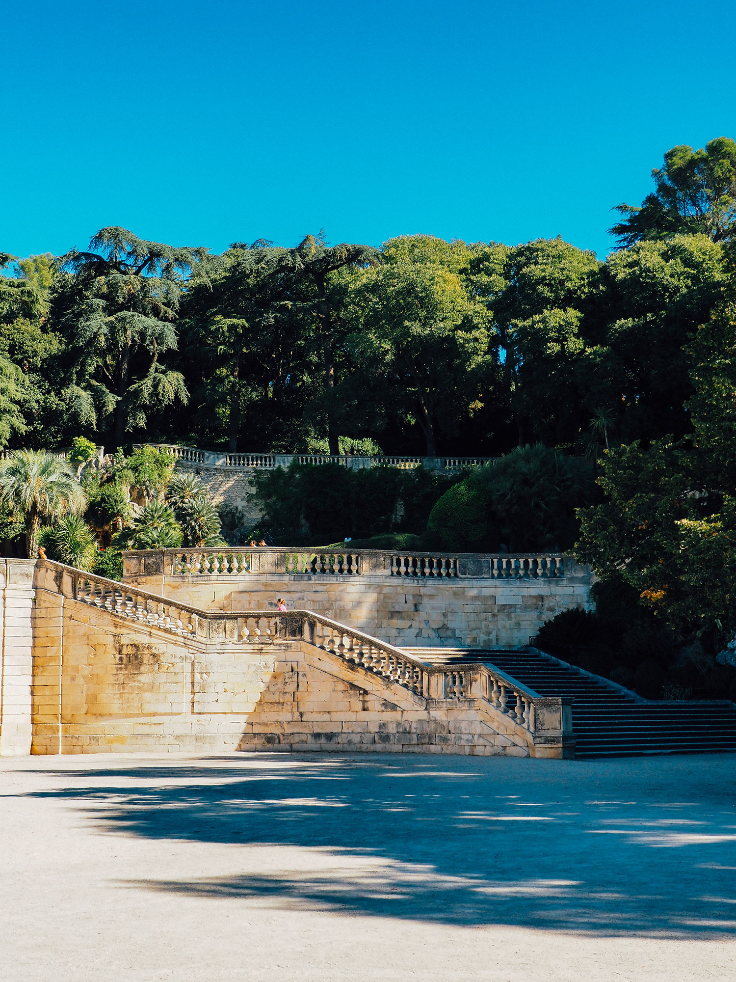 Les jardins de la Fontaine sont Le lieu de promenade favoris des Nîmois à tous les âges de leur vie. Ils ont été créés au 1!ème siècle sur le site antique de la Tour Magne et du Temple de Diane. On y trouve de jolis plans d’eau, des statues, des vases, etc. Au niveau bas, on y trouve le magnifique Temple de Diane et si l’on monte dans les jardins, on arrive à la Tour Magne, qui offre un magnifique panorama sur tout Nîmes.