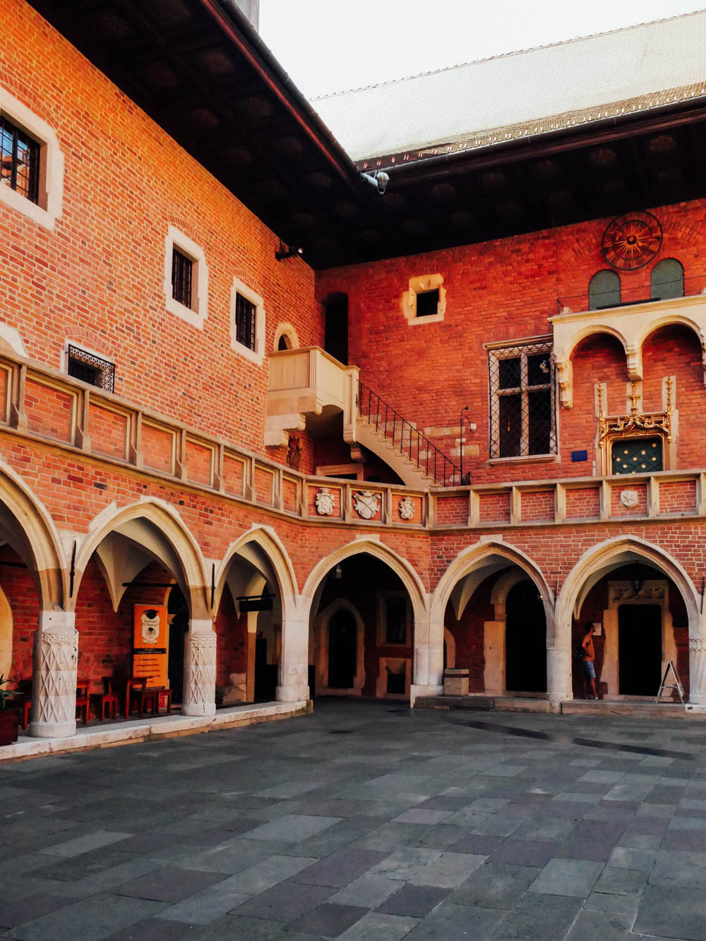 Sur une coline en bas de la vieille ville se trouve Le Château de Wawel et son incroyable dragon. Le site Wawel est composé d’un château, d’une incroyable cathédrale au mélange de styles (gothique – renaissance – romain) et d’autres édifices. J’ai beaucoup aimé la cour interieure fleurie, les remparts. Nous ne sommes pas rentrés dans la cathédrale mais je suis sure que le lieu doit être magnifique.