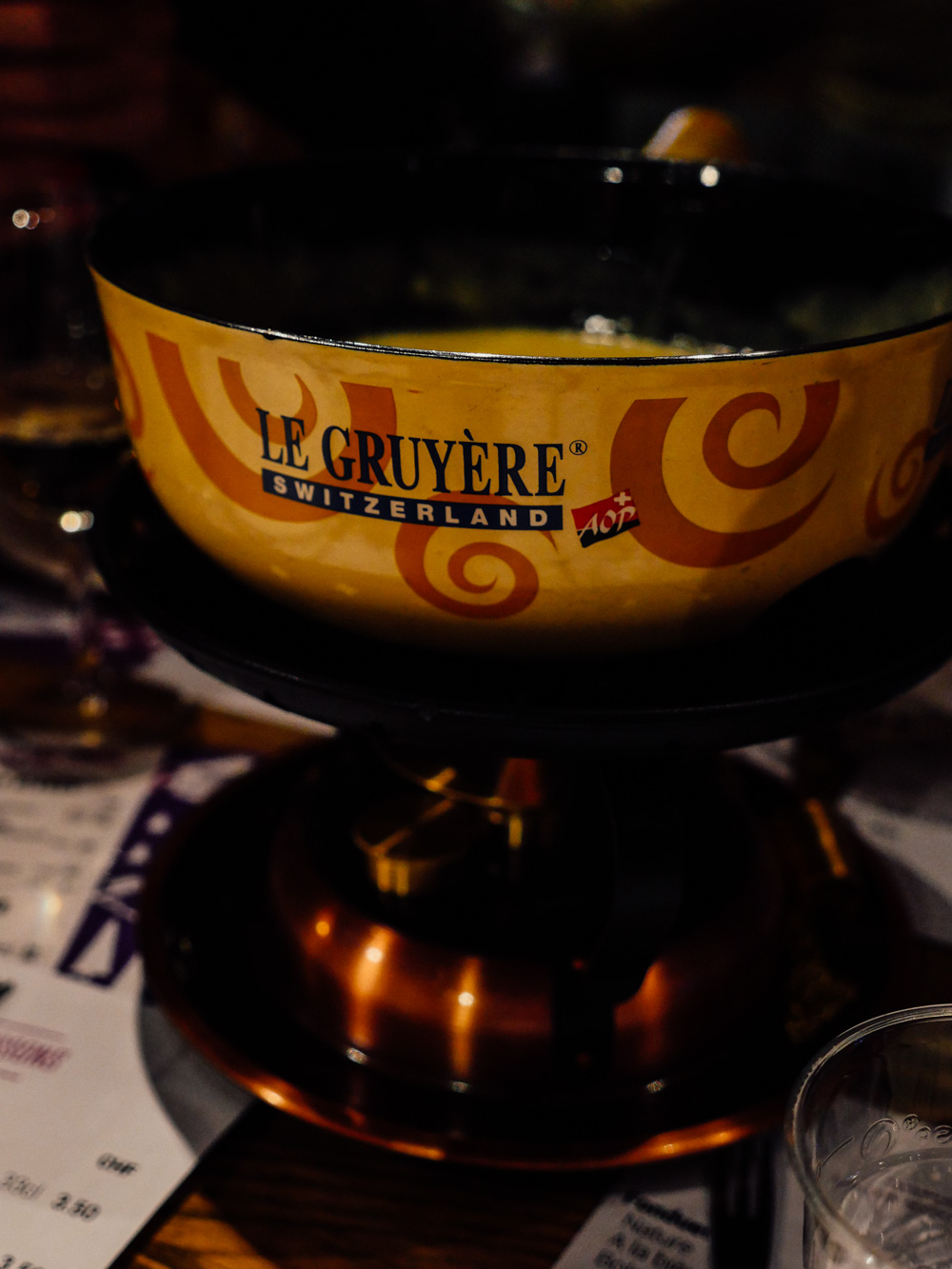 Nous nous sommes ensuite rendus à l’Igloo du Terroir Vaudois et avons donc dégusté une des spécialités suisse : la Fondue ! Cette fondue n’a rien à voir avec la fondue savoyarde que je trouve souvent trop écoeurante (ce n’est que mon avis). La fondue vaudoise a une texture plus crémeuse et plus douce. Elle composée de gruyère (sans trou) et de vacherin. J’ai eu plaisir en prendre et à en reprendre et à en reprendre…
