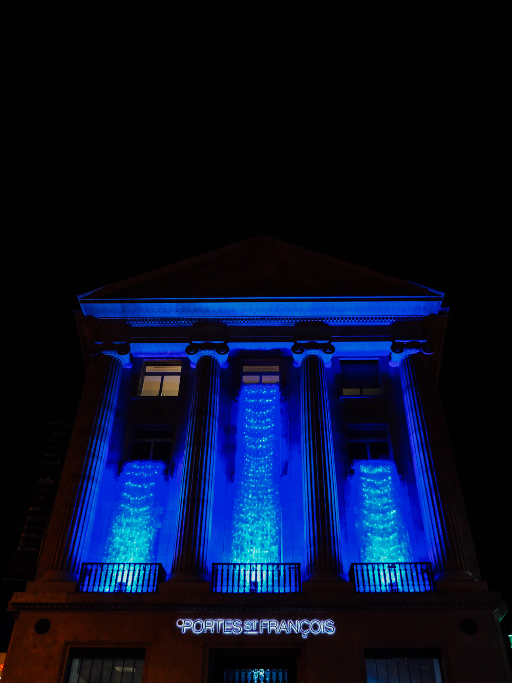 Le soir direction les marchés de Noël appelés Bô Noël, je dis bien les marchés car en fait il ne s’agit pas d’un marché de Noël mais de plusieurs marchés disséminés dans la ville, avec chacun leur spécialité. Nous avons aussi découvert le festival Lausanne Lumière. Pendant plus d’un mois, de novembre à la fin décembre, Lausanne brille de mille feux grâce aux œuvres contemporaines de lumière d’une quinzaine d’artistes. Leur disposition forme un itinéraire dans la ville.
